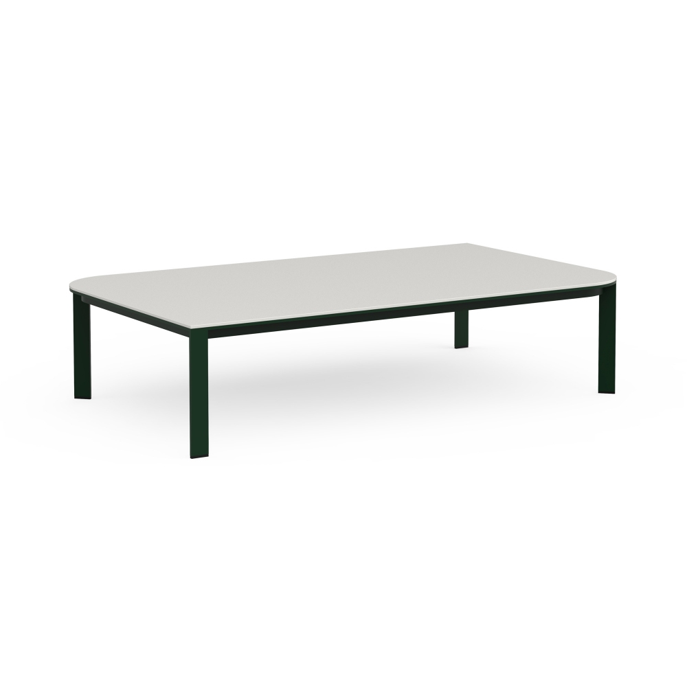 Tavolino outdoor Solanas 150x90 cm con struttura realizzata in alluminio verniciato a polveri e top in Dekton®, gambe lineari e un design minimalista con curve appena accennate lungo il piano d'appoggio e materiali di alta qualità, resistenti alle macchie e agli agenti chimici, e pensati per arredare piacevolmente in giardino o su un terrazzo. Da abbinare insieme alle poltrone della stessa linea per completare il look della tua area relax. Progettato da Daniele Germani per Gandía Blasco.