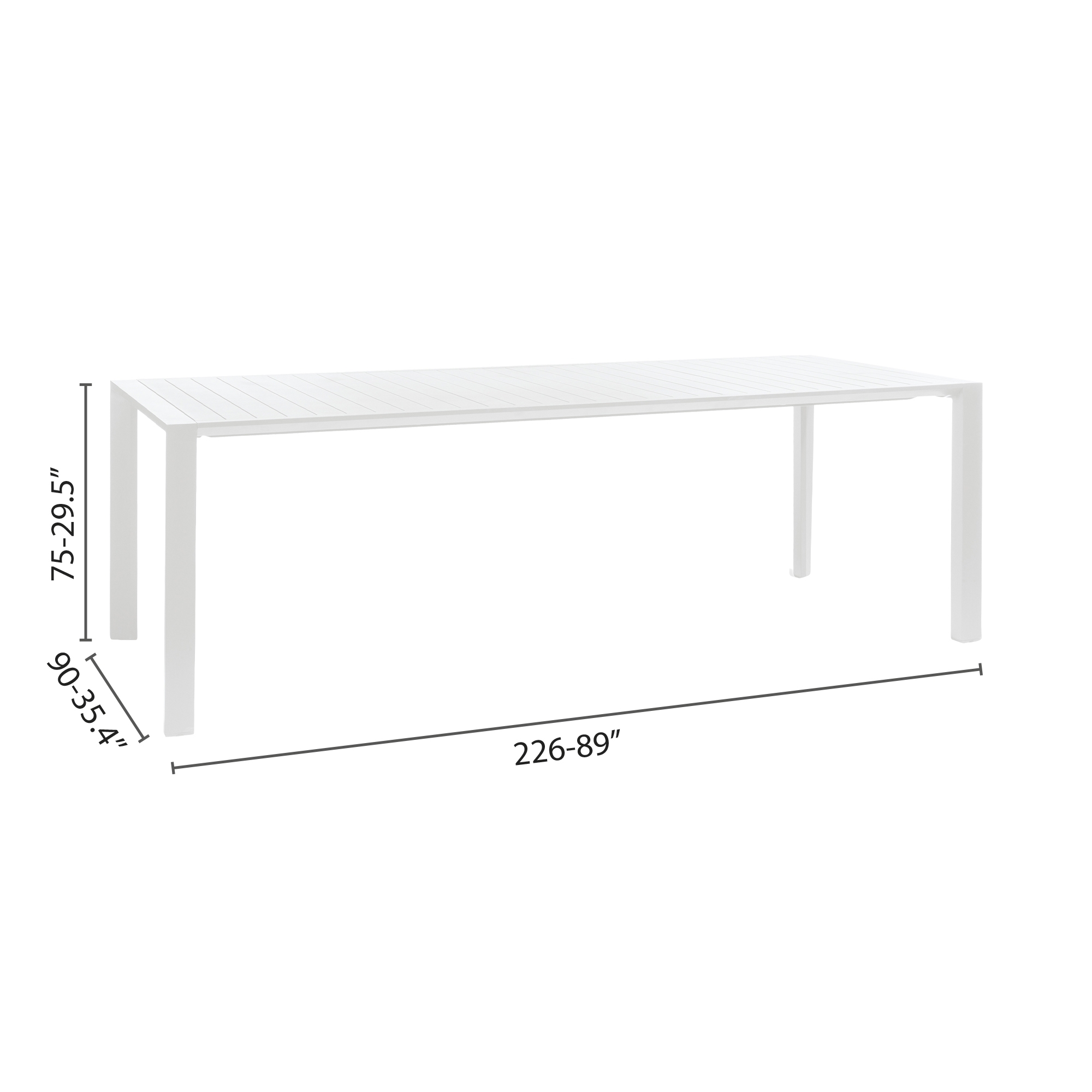 Tavolo Metris, 226x90 cm, è un'opera d'arte realizzata da Diphano per la collezione Metris, interamente in alluminio verniciato in polvere di altissma qualità che promette robustezza e resistenza ai vari agenti atmosferici come raggi UV, pioggia e umidità, perfetto per l'uso esterno. Disponibile in due bellissime combinazioni, il tavolo da pranzo Metris si abbina armoniosamente in ambienti con più stili e decori, sia che lo si scelga per il proprio giardino moderno, per un patio minimalista o una terrazza più classica. La superficie del tavolo 226x90 assicura posti per dieci persone, rendendolo ideale per cene e serate in famiglia o feste con gli amici. Inoltre, la forma rettangolare promuove la conversazione, permettendo a tutti gli ospiti di interagire visivamente con facilità. Le doghe del tavolo Metris sono realizzate in alluminio e facilitano la manutenzione e la pulizia. Il tavolo Metris 226x90 cm è più di un semplice pezzo di arredamento, è una vera e propria dichiarazione di stile, funzionalità e innovazione senza eguali.