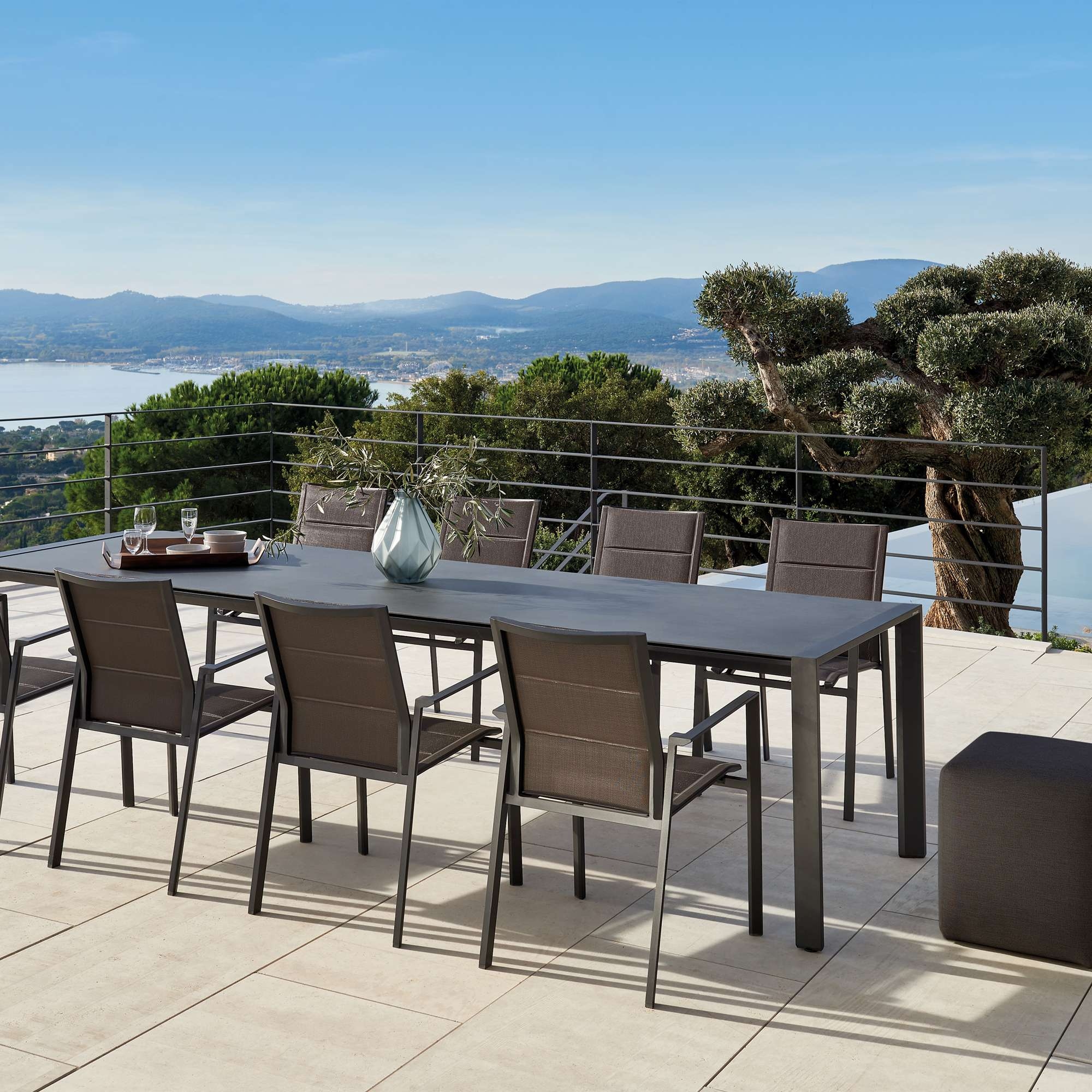 Tavolo Selecta, 226x90 cm e altezza di 75 cm, è un esempio perfetto di unione tra funzionalità, stile e bellezza, realizzato da Diphano in alluminio di alta qualità che promette robustezza e resistenza ad agenti atmosferici quale pioggia, sole e umidità. Questo meraviglioso tavolo outdoor è disponibile in due splendide colorazioni, rendendolo perfetto per ogni genere di arredamento e spazio: che si tratti di una terrazza dallo stile minimalista, o di un giardino con piscina dallo stile più moderno, il tavolo Selecta arricchisce ogni tipo di spazio e lo trasforma in una vera e propria oasi di benessere ed eleganza. La misura 226x90 cm dona posti a sedere a molte persone, quindi è l'ideale per cene e serate in famiglia o feste tra amici. Inoltre, il piano del tavolo Selecta può essere in ceramica bianca o ceramica nera, un materiale perfetto per esterni grazie alla sua resistenza al calore, all'olio o ai materiali acidi; il suo carattere anti-graffio lo rende ideale per mangiare all'aperto. La ceramica regala al tavolo quel tocco di lusso ed eleganza unico ed inimitabile. Scegli il tavolo Selecta 226x90 cm e dai un tocco di raffinatezza al tuo spazio preferito della casa.