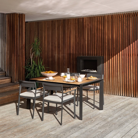 Tavolo allungabile Alexa, 160-220x96 h 75, è stato realizzato con materiali di alta qualità, tipico di Diphano, quali alluminio robusto e durevole nel tempo e il pregiatissimo legno Teak che assicura resistenza ai vari agenti atmosferici quali pioggia, raggi UV e umidità. Questo magnifico tavolo outdoor è disponibile in due bellissime colorazioni, quindi è abbinabile con qualsiasi tipo di arredamento esterno: può essere posizionato all'interno di un terrazzo dallo stile minimalista, o in giardino accanto la piscina moderna e all'avanguardia. Il tavolo Alexa ha la particolarità: con uno sforzo minimo, questo tavolo da pranzo per sei perone, si trasforma in un tavolo per otto persone, quindi da 160 cm a 220 cm. La facilità di manutenzione è un altro punto di forza del tavolo allungabile Alexa; è sufficiente una semplice pulizia con detergente neutro e acqua per mantenere inalterato nel tempo il suo bellissimo aspetto estetico. Sinteticamente, se cerchi un tavolo allungabile che unisca bellezza, funzionalità e innovazione, il tavolo allungabile Alexa è fatto per te.