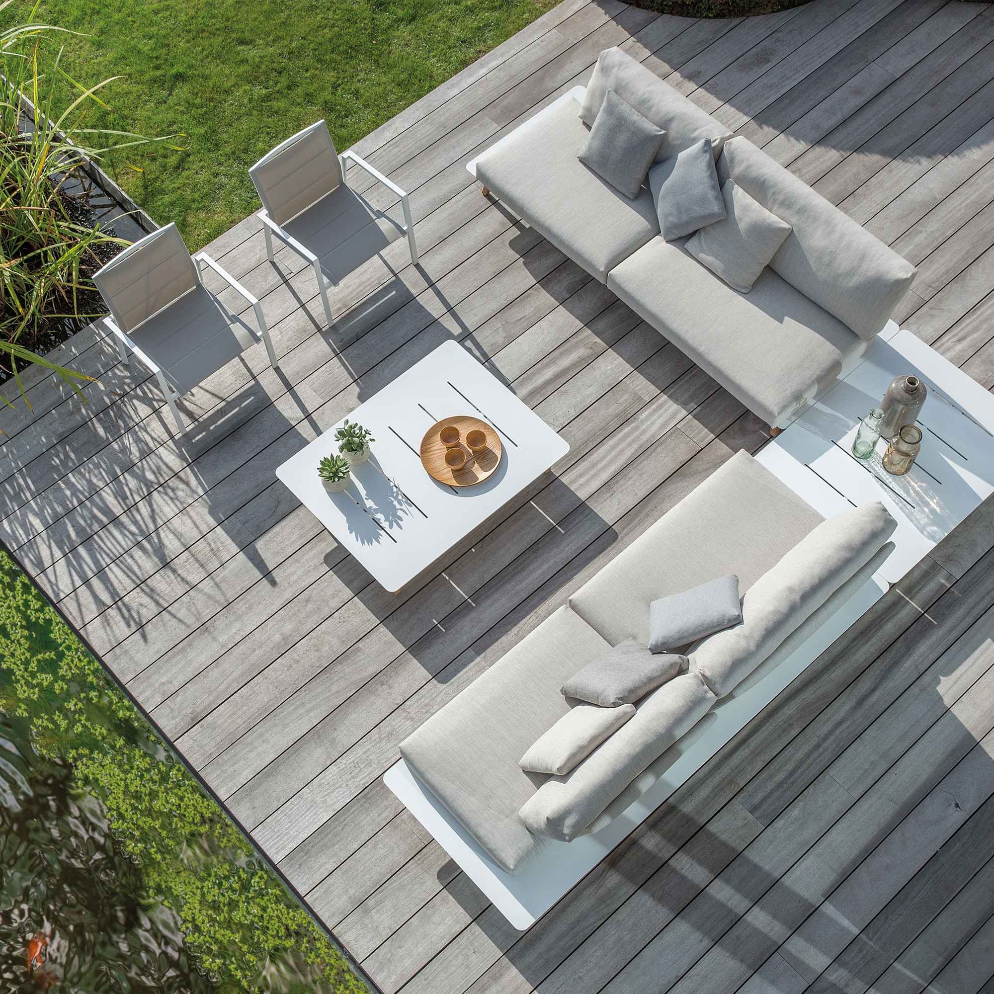 Tavolino Link, 120x92 con altezza di 23 cm, promette durabilità e leggerezza grazie all'alluminio di alta qualità, e resistenza ai vari agenti atmosferici come pioggia, umidità e raggi UV grazie al legno Teak, ideale per l'uso esterno. Questo unico ed elegante pezzo di design offre ampiezza e praticità, e il suo stile semplice e minimalista lo rende versatile per qualsiasi tipo di arredamento: può essere posizionato all'interno di una terrazza dallo stile classico e tradizionale, oppure in un giardino rustico e moderno. Con la sua lunghezza di 120 cm, Link tavolino outdoor regala dei pranzi pieni di allegria e gioia con amici e parenti, oppure momenti di pieno relax in solitudine. L'ampia superficie lo rende perfetto sia come punto focale per riunirsi, sia come complemento per posizionare bevande o libri, unendo praticità e bellezza. Il tavolino Link riuscirà a trasformare qualsiasi angolo della tua casa in un'oasi di bellezza e benessere. Questo meraviglioso tavolino Link rappresenta l'apoteosi del design ed è il connubio perfetto tra funzionalità, innovazione e raffinatezza. Scegli pure tu il tavolino outdoor Link e crea il tuo spazio accogliente ed elegante a casa tua.