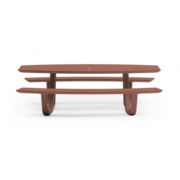 Tavolo con panche 8teen realizzato in alluminio. Disponibile in 3 colori, il tavolo con panche 8teen è l'aggiunta ideale per qualsiasi spazio esterno che voglia coniugare stile e comfort. Questo set, ideale per il design di esterni, garantisce una seduta ergonomica e confortevole grazie alle sue due panche spaziose dotate di sedili curvati, progettati appositamente per adattarsi alla forma del corpo, offrendo un'esperienza di relax senza pari. Che tu stia arredando un giardino, una terrazza o un patio, questo tavolo con panche si adatta perfettamente a qualunque esterno. La versatilità cromatica del tavolo con panche 8teen permette di inserirlo in ogni contesto esterno, grazie alle sue finiture in bianco, grafite e terracotta. Ogni opzione è stata selezionata per integrarsi armoniosamente con l'ambiente circostante, fornendo un tocco di classe che eleva l'estetica dell'arredamento esterno. Oltre all'aspetto visivamente attraente, il set vanta una resistenza e facilità di manutenzione eccellenti, garantendo che il tuo spazio all’aperto resti splendido anno dopo anno. Il tavolo con panche 8teen si distingue come scelta primaria per coloro che desiderano godere al massimo del proprio spazio esterno. Che si tratti di ricevere ospiti per occasioni speciali, godersi serate estive in famiglia o semplicemente rilassarsi all'aria aperta, questo set da Atmosphera offre un ambiente accogliente e stiloso. Disegnato da Atmosphera Creative Lab.