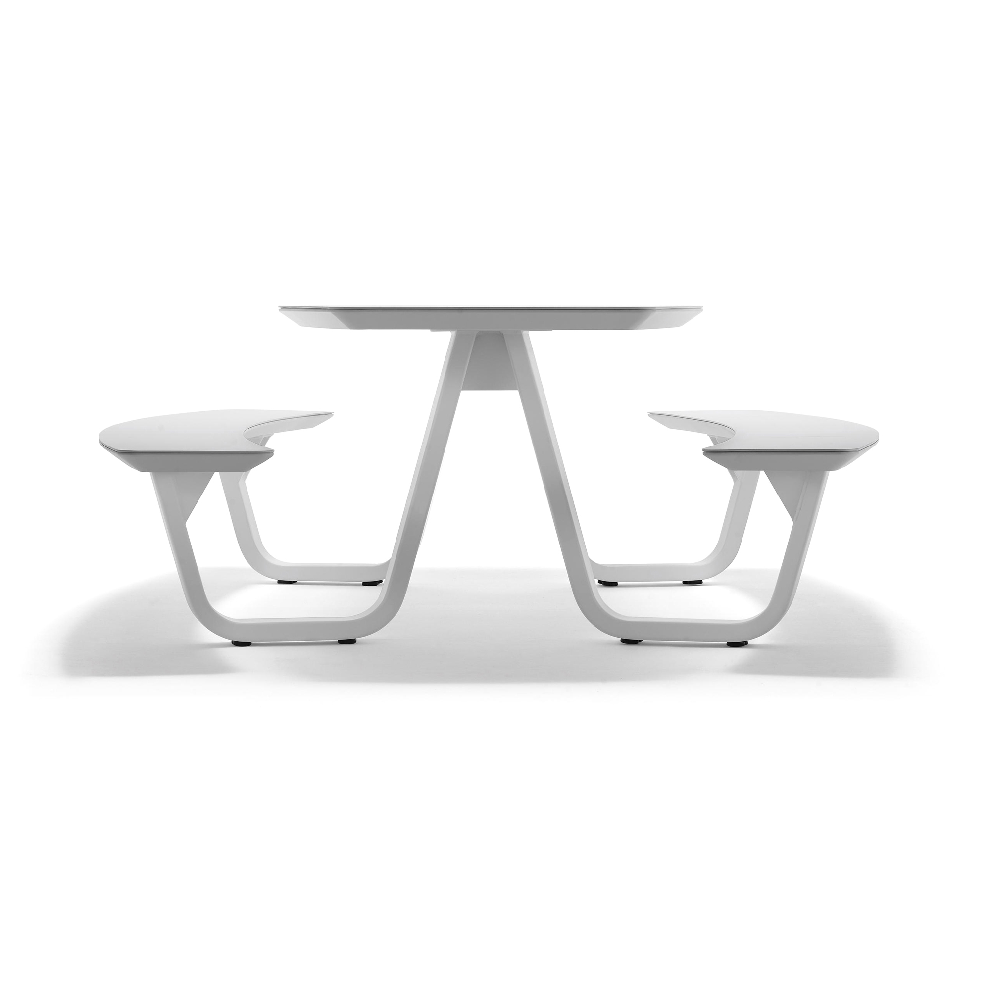 Tavolo con panche 8teen realizzato in alluminio. Disponibile in 3 colori, il tavolo con panche 8teen è l'aggiunta ideale per qualsiasi spazio esterno che voglia coniugare stile e comfort. Questo set, ideale per il design di esterni, garantisce una seduta ergonomica e confortevole grazie alle sue due panche spaziose dotate di sedili curvati, progettati appositamente per adattarsi alla forma del corpo, offrendo un'esperienza di relax senza pari. Che tu stia arredando un giardino, una terrazza o un patio, questo tavolo con panche si adatta perfettamente a qualunque esterno. La versatilità cromatica del tavolo con panche 8teen permette di inserirlo in ogni contesto esterno, grazie alle sue finiture in bianco, grafite e terracotta. Ogni opzione è stata selezionata per integrarsi armoniosamente con l'ambiente circostante, fornendo un tocco di classe che eleva l'estetica dell'arredamento esterno. Oltre all'aspetto visivamente attraente, il set vanta una resistenza e facilità di manutenzione eccellenti, garantendo che il tuo spazio all’aperto resti splendido anno dopo anno. Il tavolo con panche 8teen si distingue come scelta primaria per coloro che desiderano godere al massimo del proprio spazio esterno. Che si tratti di ricevere ospiti per occasioni speciali, godersi serate estive in famiglia o semplicemente rilassarsi all'aria aperta, questo set da Atmosphera offre un ambiente accogliente e stiloso. Disegnato da Atmosphera Creative Lab.