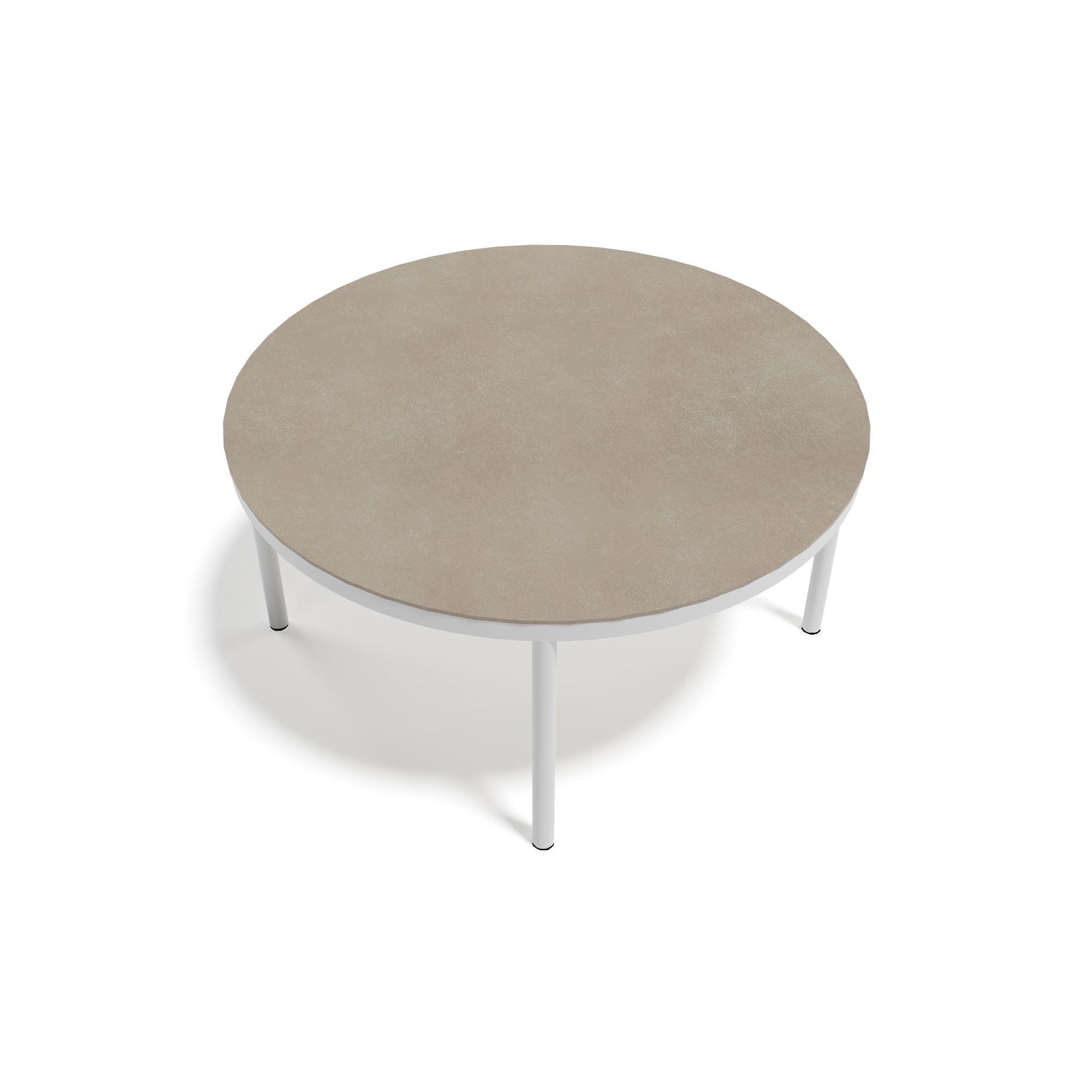 Tavolo da esterno Dulton Ø150x78 cm realizzato con struttura in alluminio bianco e grafite con piano in HPL o gres, disponibile in due colori. Il tavolo outdoor Dulton rappresenta una soluzione ricercata ed elegante per chi desidera valorizzare gli spazi all'aperto, coniugando funzionalità e design minimale. Questo tavolo, distintivo per la sua forma rotonda, diviene un punto di incontro privilegiato, ideale sia per ambienti residenziali che per quelli legati all'hospitality, come caffetterie, ristoranti all'aperto o terrazze panoramiche. Il design rotondo del tavolo facilita la conversazione e lo scambio, rendendolo perfetto per momenti di convivialità e per creare un'atmosfera accogliente e inclusiva. Che sia per un caffè mattutino in solitudine, un pranzo in famiglia o una cena sotto le stelle con gli amici, il tavolo outdoor Dulton garantisce comfort e stile, diventando una scelta prediletta per chiunque desideri un pezzo d'arredo di qualità per il proprio spazio all'aperto. La versatilità del suo disegno consente al tavolo Dulton di adattarsi a svariate esigenze, unendo praticità a un'estetica piacevole: questo lo rende un elemento impareggiabile nell'arredamento outdoor. Progettato con una particolare attenzione alla durabilità e alla manutenibilità, il tavolo è pensato per resistere nel tempo, mantenendo inalterato il proprio fascino. Per chi cerca un equilibrio tra eleganza e funzionalità, il tavolo da esterno Dulton si rivela la scelta ideale, capace di trasformare qualsiasi spazio esterno in un angolo di paradiso. Disegnato da Atmosphera Creative Lab.