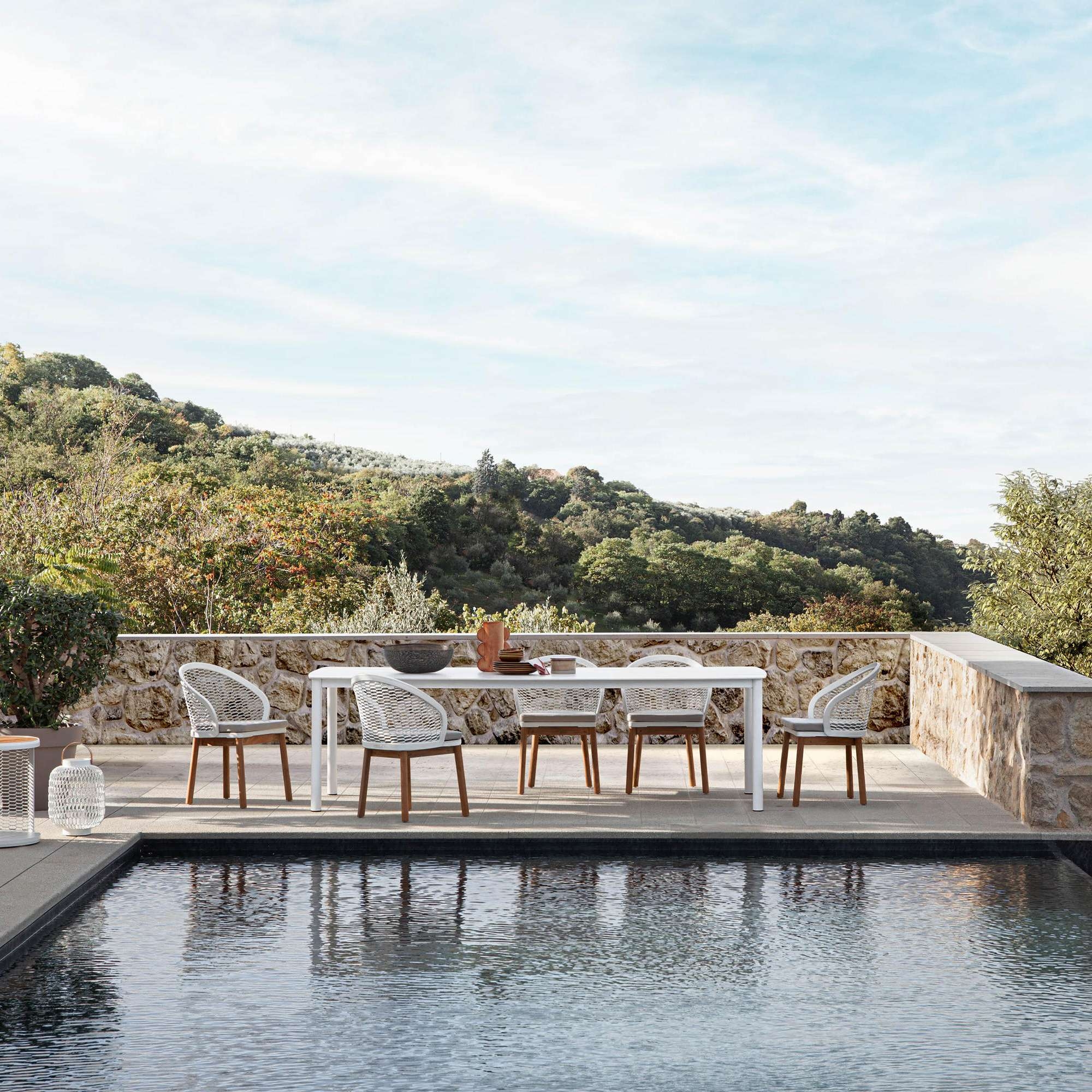Tavolo rettangolare da esterno Dulton 212x112x78h cm realizzato con struttura in alluminio bianco e grafite con piano in HPL o gres, disponibile in due colori. Ideale per ambientazioni sia residenziali che commerciali, il tavolo Dulton si adatta con eleganza a terrazze, giardini, balconi e spazi dedicati all'hospitality, come caffè e ristoranti all'aperto. Realizzato con un'attenzione particolare al design e alla durabilità, questo tavolo presenta una struttura robusta in alluminio, disponibile nelle finiture di colore bianco o grafite, che garantisce resistenza agli agenti atmosferici e una lunga vita utile. Il piano del tavolo, scelto tra HPL ad alta resistenza o gres porcellanato di qualità, si offre in due diverse colorazioni per adattarsi perfettamente a ogni stile di decoro esterno. Il formato del tavolo Dulton permette di ottimizzare lo spazio disponibile, rendendolo particolarmente adatto per incontri conviviali, cene all'aperto o come punto di aggregazione in qualsiasi contesto outdoor. La sua linea pulita ed essenziale riflette la tendenza attuale nell'arredamento esterno, privilegiando elementi che combinano estetica minimale a massima funzionalità. Disegnato da Atmosphera Creative Lab.