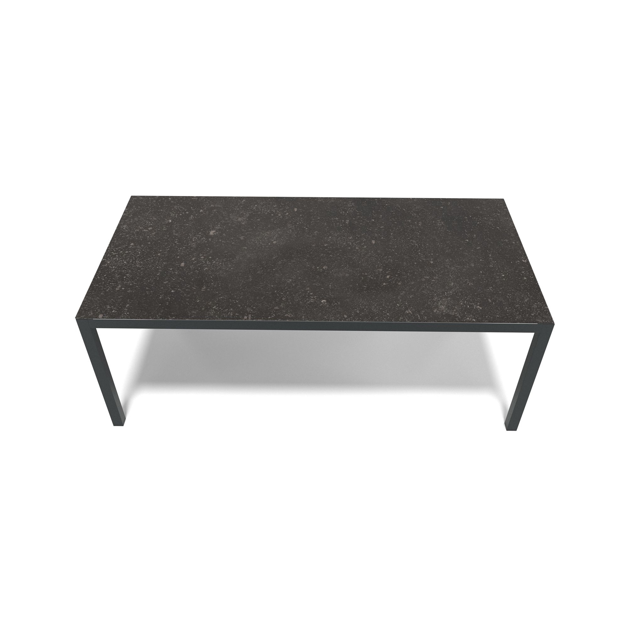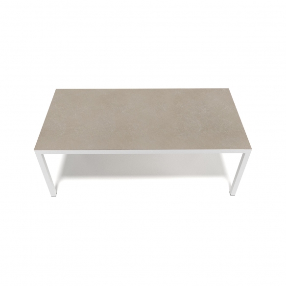 Tavolo rettangolare da esterno Flair 200x100x78h cm realizzato con struttura in alluminio bianco o grafite e piano in HPL o gres, disponibile in 2 colori. Il tavolo rettangolare da esterno Flair rappresenta un'aggiunta sofisticata per ogni spazio aperto, mixando funzionalità con un design esteticamente accattivante. Disegnato da Atmosphera Creative Lab, questo tavolo misura generose dimensioni che lo rendono perfetto per ospitare gruppi numerosi, regalando momenti indimenticabili all'aperto insieme a familiari e amici. Realizzato con una struttura in alluminio di alta qualità, è disponibile in finiture bianco o grafite, che non solo garantiscono eccellente resistenza agli agenti atmosferici ma aggiungono pure un tocco di eleganza moderna al tuo giardino, balcone o terrazza. Il piano, disponibile in materiali innovativi come l'HPL o il gres, è progettato per resistere nel tempo, mantenendo la sua bellezza senza richiedere manutenzioni frequenti e garantendo una facile pulizia. L'ampia dimensione del tavolo Flair rettangolare lo rende la soluzione ideale per allestire aree dining all'aperto, consentendo di godere di pranzi e cene all'aria aperta in pieno comfort e stile. La sua linea pulita e il design minimalista lo rendono adatto a diversi contesti esterni, da quelli più moderni e sofisticati a quelli più tradizionali, integrandosi perfettamente con vari tipi di sedute. Investire nel tavolo rettangolare da esterno Flair significa scegliere un pezzo di arredamento che coniuga alla perfezione design, durabilità e funzionalità, trasformando ogni spazio esterno in un'ambiente accogliente e raffinato.
