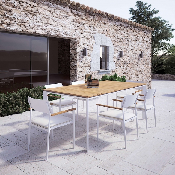 Tavolo da esterno Magic 220x100x75h cm realizzato con struttura in alluminio per esterni e piano in teak massiccio Asiatico. Disponibile in 3 colori, il tavolo outdoor Magic è un’icona di stile e durabilità per ogni spazio all'aperto. Perfetto per arricchire giardini, terrazze o patii con un tocco di classe indiscutibile, il tavolo Magic è la scelta ottimale per chi non vuole rinunciare alla bellezza senza compromettere la funzionalità. Di manifattura eccezionale e con un design che cattura l'attenzione, il tavolo Magic offre un punto d’incontro elegante per chi ama condividere momenti conviviali all'aria aperta. La sua superficie in TEAK non solo dona un aspetto caldo e accogliente ma garantisce anche una lunga durata, resistendo agli elementi in ogni stagione. Con il suo aspetto raffinato e la straordinaria robustezza, il tavolo Magic è destinato a diventare il protagonista dei tuoi spazi esterni, facendo da palcoscenico a innumerevoli ricordi preziosi. Scegliere il tavolo Magic significa optare per un pezzo di arredamento che fonde innovazione, estetica e funzionalità, trasformando qualsiasi esterno in un angolo di paradiso personale dove stile e praticità vanno di pari passo. Disegnato da Atmosphera Creative Lab.