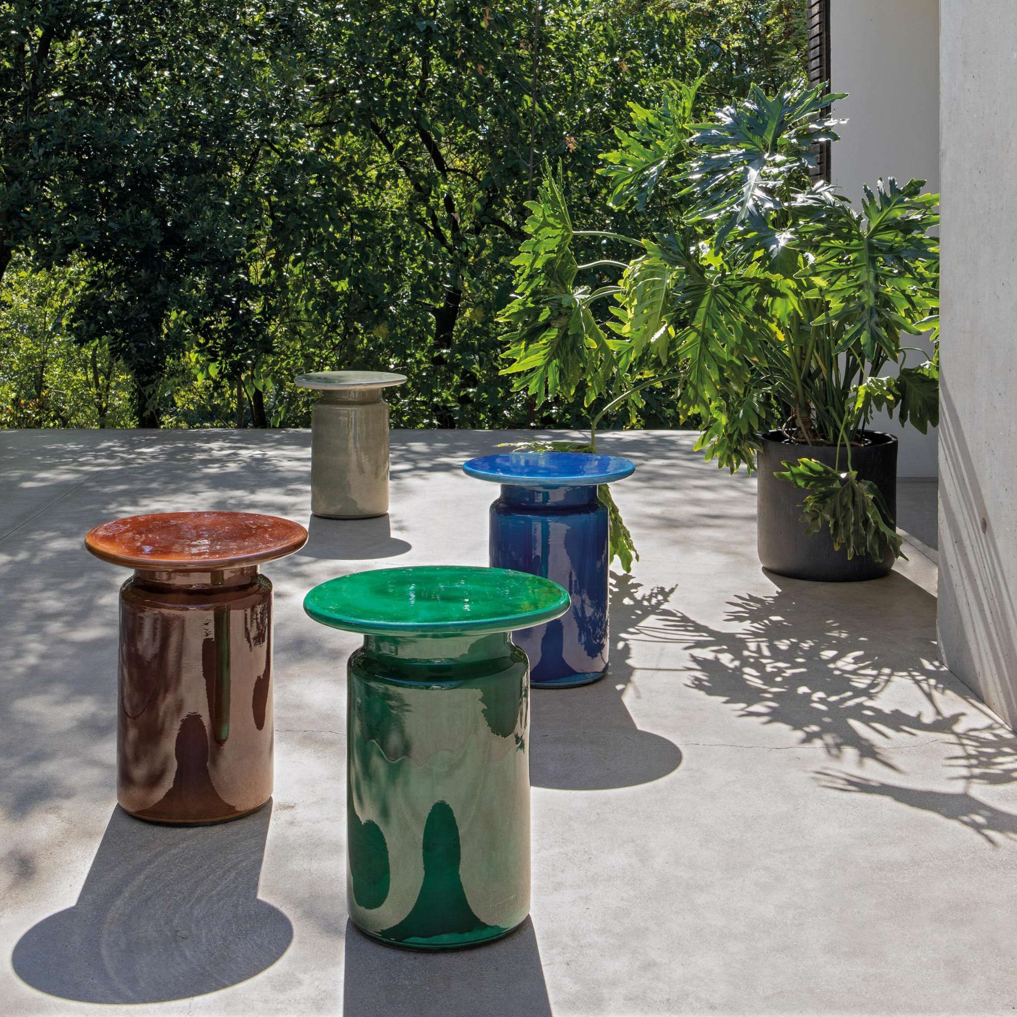 Tavolino da servizio outdoor Panarea realizzato interamente in ceramica smaltata lucida. Disponibile in 4 splendidi colori, il tavolino da servizio outdoor Panarea si distingue per il suo design essenziale e per l'eleganza delle sue linee, rendendolo un complemento d’arredo esterno versatile e di grande impatto visivo. Elegante, fresco e vivace, Panarea unisce la praticità di utilizzo alla bellezza di un materiale pregiato, garantendo resistenza alle intemperie e facilità di manutenzione. Le finiture disponibili, Terracotta, Verde smeraldo, Acquamarina e Oliva, permettono di scegliere la tonalità perfetta per qualsiasi tipo di ambientazione esterna, dalla più classica alla più contemporanea, e di creare giochi di colore armoniosi o contrasti affascinanti. Il tavolino outdoor Panarea non è solo un oggetto di design, ma anche un simbolo di sostenibilità. Vincitore del premio per la Sostenibilità nella categoria outdoor agli Archiproducts® Design Awards del 2022, questo pezzo testimonia l'impegno nella creazione di prodotti che rispettano l'ambiente senza rinunciare allo stile e alla funzionalità. Adatto a ornare giardini, terrazze e spazi esterni di ogni dimensione, Panarea è l'ideale per accompagnare momenti di relax e conversazione all'aperto, aggiungendo una nota di lusso discreto e consapevole. Disegnato da Atmosphera Creative Lab.
