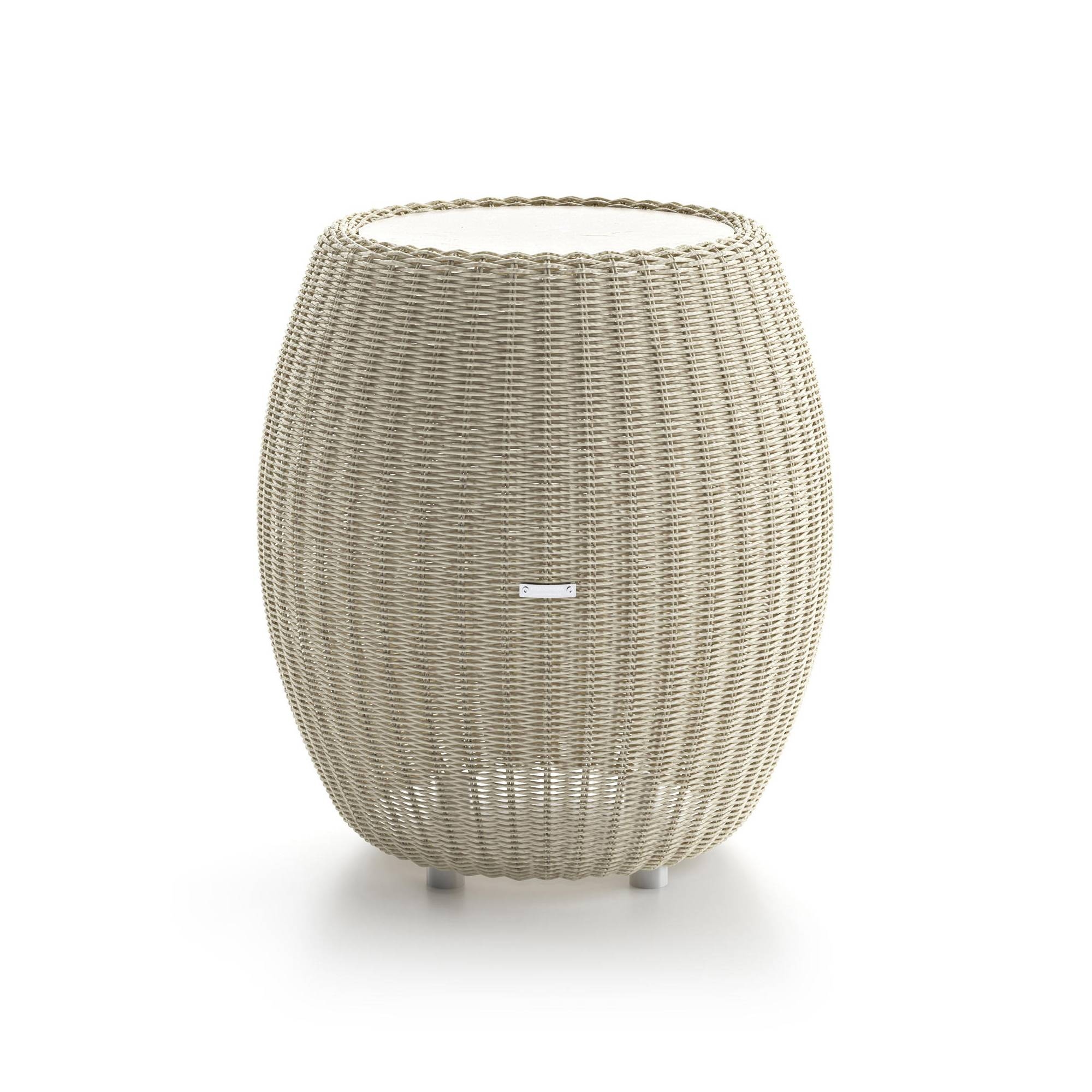 Tavolino da servizio outdoor Twiga Ø62x56.5h cm realizzato con struttura in alluminio verniciato epossidico per esterni, intreccio in estruso di polietilene solidificato ad acqua intrecciato a mano e piano in pietra fossile per esterni. Disponibile in 2 colori, il tavolino da servizio outdoor Twiga rappresenta una sublime fusione di utilità e raffinatezza, inserendosi come elemento imprescindibile nell’organizzazione del tuo spazio esterno. Progettato per soddisfare le necessità di robustezza e stile, è dotato di una struttura in alluminio verniciato epossidico, ideale per resistere alle intemperie e agli ambienti esterni. La superficie è valorizzata da un'intrecciatura realizzata a mano in estruso di polietilene solidificato ad acqua, dettaglio che, oltre ad esaltare la bellezza del tavolino, ne garantisce resistenza e durevolezza. Il Twiga non è solo un piacere estetico, ma anche un campione di funzionalità: lavabile, leggero da spostare e allo stesso tempo morbido al tatto, è anche un prodotto riciclabile nel pieno rispetto dell'ambiente. Robusto nelle situazioni più difficili, questo tavolino non teme l'esposizione all'acqua, alla salsedine, ai raggi UV, alla neve e agli agenti atmosferici, presentandosi come la soluzione ottimale per ogni tipo di outdoor, dai terrazzi ai bordi piscina. Disegnato da Atmosphera Creative Lab.