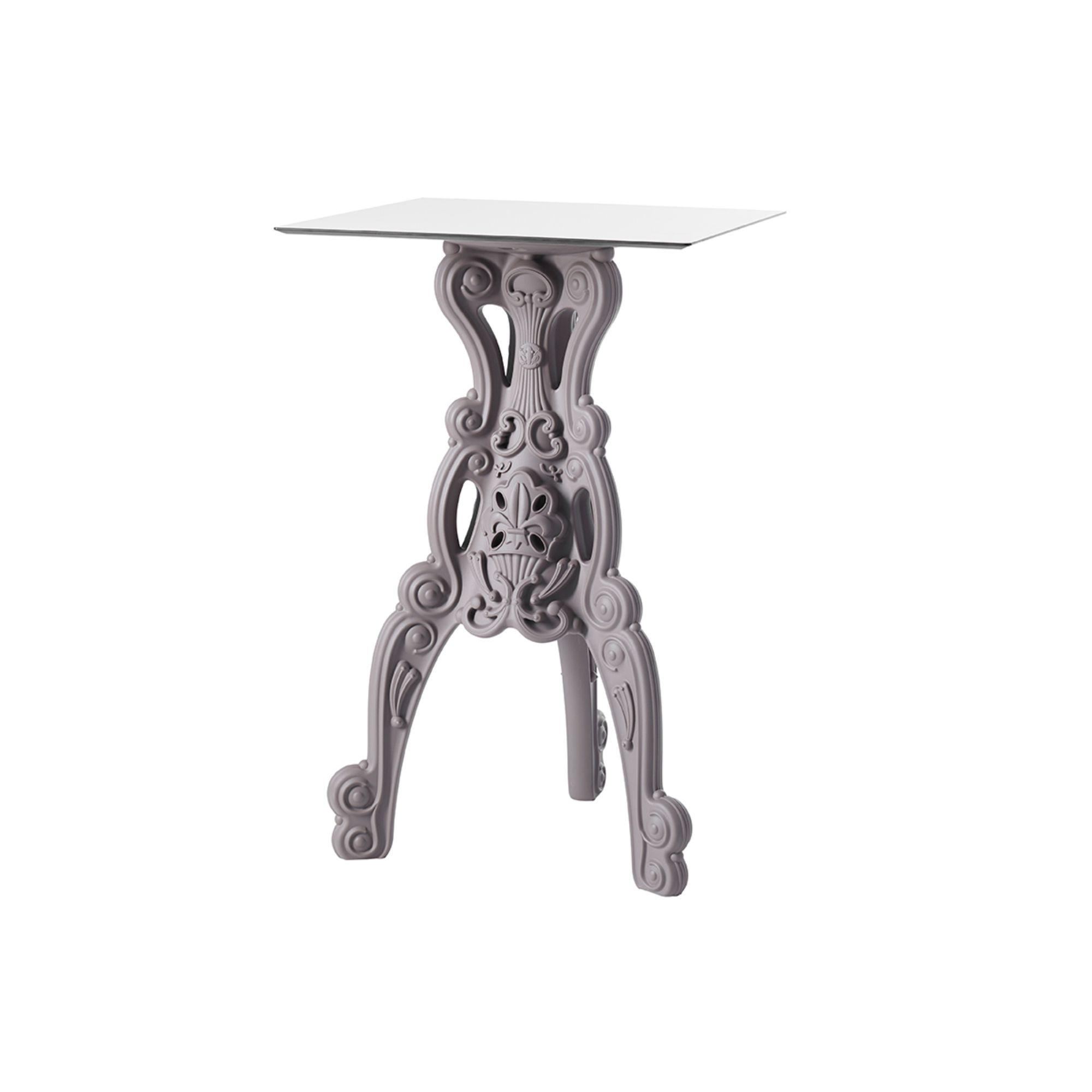 Il tavolo Master of Love con top quadrato, con misure 69x69 cm, è un bellissimo complemento d'arredo realizzato da Slide in polietilene e top in HPL, ideale per spazi indoor e outdoor. Questo tavolo alto ha un design lussuoso e ricco di dettagli, e con le sue gambe arcuate che richiamano lo stile barocco si integra benissimo in contesti classici, moderni o minimalisti: che sia collocato in giardino, in un salotto oppure in terrazza, Master of Love rappresenta un elemento di arredo unico che non passa inosservato. Inoltre, il tavolo è disponibile in varie combinazioni, adatto agli eventi e agli spazi contract. Il suo piano quadrato offre lo spazio per ospitare 4, rendendolo perfetto per aperitivi con gli amici o con la famiglia. Il tavolo Master of Love è stato studiato pensando alla sostenibilità, realizzato con materiali completamente riciclabili. Questo aspetto, unito all'attenzione per i dettagli e alla qualità costruttiva, rende Master of Love di Slide un'opzione perfetta per chi cerca un prodotto durevole, esteticamente gradevole e rispettoso dell'ambiente. Design di Moro & Pigatti per Slide.