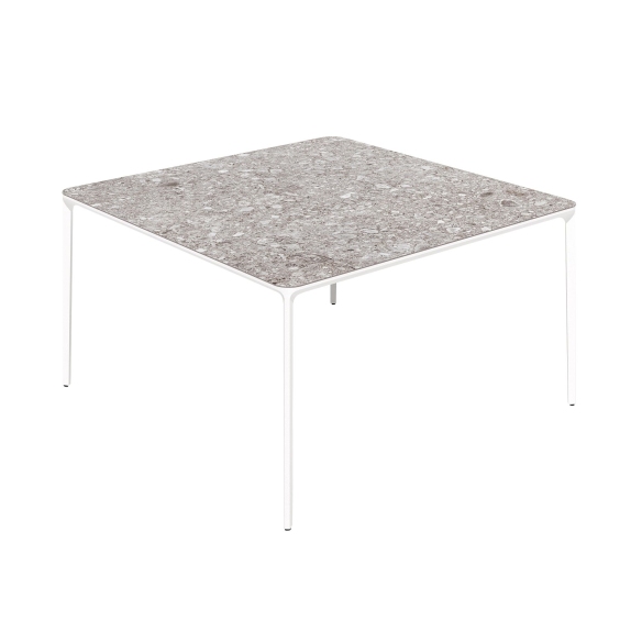 Tavolo quadrato Slim realizzato con gambe e struttura in alluminio, top in ceramica. Elegante e raffinato, il tavolo quadrato Slim è in grado di armonizzarsi con qualsiasi ambiente, dalla cucina al salotto, dallo stile minimalista al contemporaneo.  La base del tavolo Slim è realizzata in alluminio, un materiale noto per la sua resistenza e leggerezza, che si sposa perfettamente con il carattere contemporaneo del pezzo. Le gambe slanciate e sinuose si combinano perfettamente con la ceramica del top, che con la sua finitura raffinata e liscia al tatto, dona al tavolo slim un aspetto sia elegante che resistente. Disegnato da Matthias Demacker per Sovet.