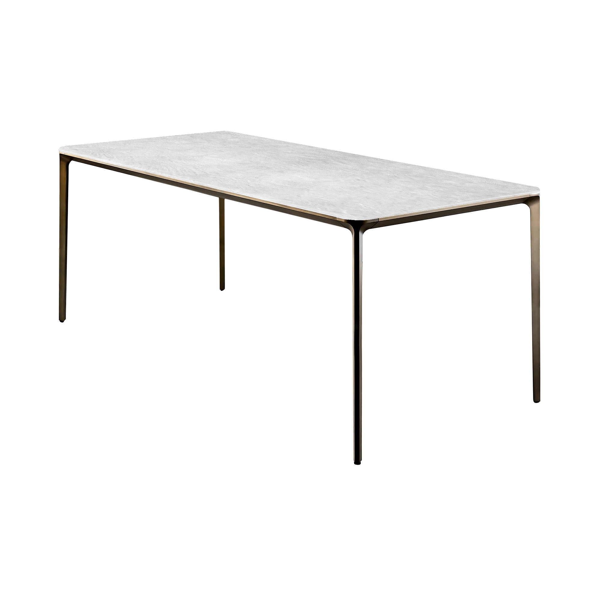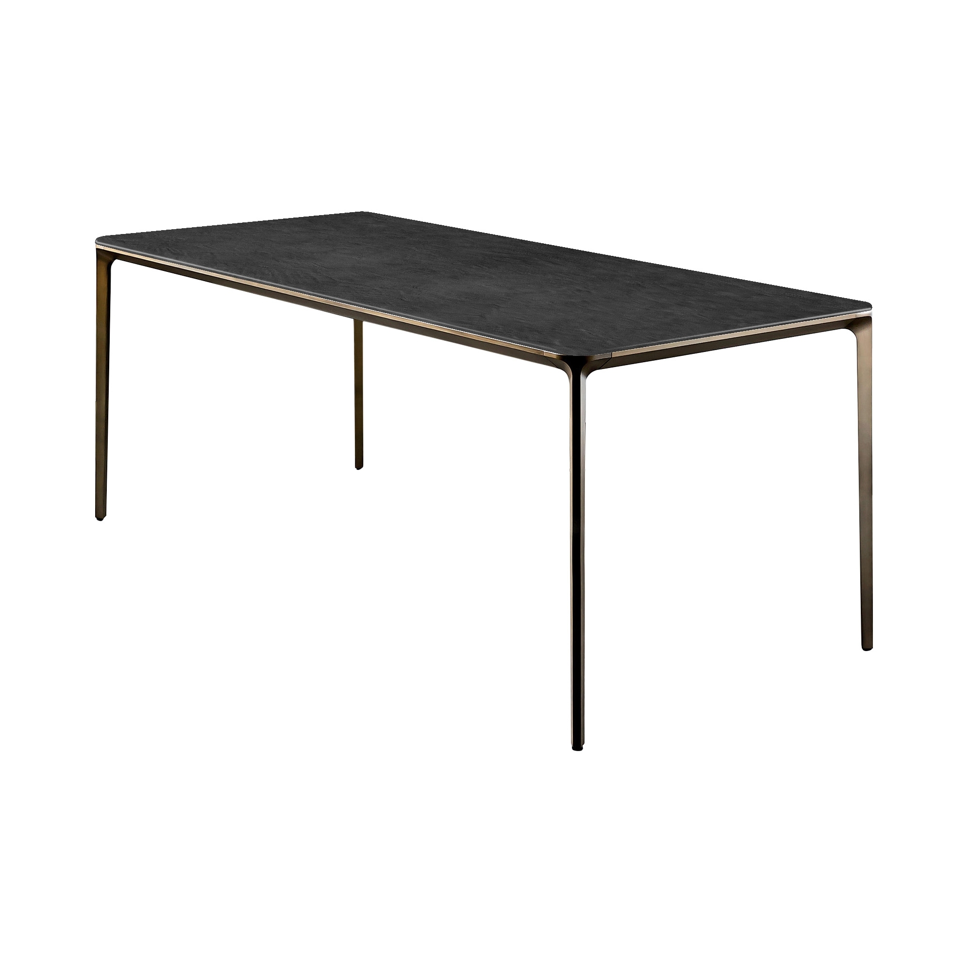 Tavolo rettangolare Slim realizzato con gambe e struttura in alluminio, top in materia. Elegante e raffinato, il tavolo rettangolare Slim è in grado di armonizzarsi con qualsiasi ambiente, dalla cucina al salotto, dallo stile minimalista al contemporaneo. La base del tavolo Slim è realizzata in alluminio, un materiale noto per la sua resistenza e leggerezza, che si sposa perfettamente con il carattere contemporaneo del pezzo. Le gambe slanciate e sinuose si combinano perfettamente con la materia del top, che con la sua finitura raffinata e liscia al tatto, dona al tavolo slim un aspetto sia elegante che resistente. Disegnato da Matthias Demacker per Sovet.