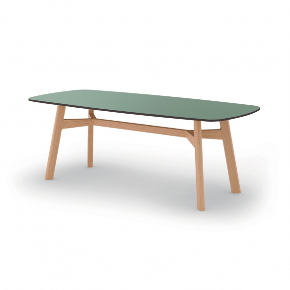 Tavolo Gem 220x100 cm realizzato con base in rovere e piano in laminato, Exclusive (Polaris) o rovere. Caratterizzato da un design semplice ma espressivo, il tavolo Gem si inserisce perfettamente in qualsiasi ambiente. Le sue gambe armoniche e sensuali si innestano al tronco centrale con solidità e invisibilità, creando un effetto elegante e contemporaneo. Disegnato da Valentina Carretta per Sculptures Jeux.