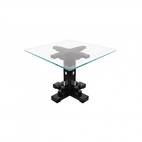 Lalique Tavolo quadrato in cristallo trasparente, laccato nero Raisins Edizione Numerata