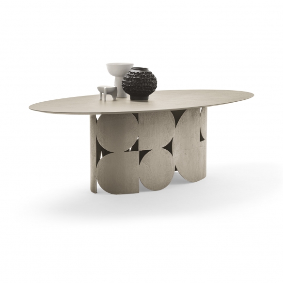 Tavolo ovale Shape realizzato con base in metallo e piano in legno. Disponibile nelle finiture laccato opaco, lucido diretto (piano spazzolato) in 24 colori RAL oppure materico spazzolato in 4 finiture. Proposto in 2 dimensioni, il tavolo ovale Shape combina maestria artigianale e eleganza, offrendo una soluzione di arredo distintiva per ogni ambiente domestico. Il tavolo ovale Shape è progettato per chi desidera unire funzionalità e design innovativo, rendendolo un'aggiunta ineguagliabile per ogni sala da pranzo o living. L'estetica raffinata del piano in legno, abbinata a una gamba centrale artisticamente elaborata, incarna un equilibrio tra classico e contemporaneo che permette al tavolo di integrarsi armoniosamente con vari stili d'arredo, conferendo all'ambiente un carattere forte e uno stile senza tempo. Il tavolo ovale Shape trascende la sua funzione di semplice elemento d'arredo per diventare un simbolo di gusto raffinato e un investimento nella bellezza che caratterizza la vita quotidiana. È ideale per coloro che apprezzano l'arte del buon vivere e aspirano a creare spazi arricchiti di eleganza, comfort e personalità unica. Questo tavolo non solo colpisce per il suo aspetto visivo straordinario, ma stimola anche la creazione di momenti condivisi memorabili. Disegnato da Uto Balmoral per Mogg.
