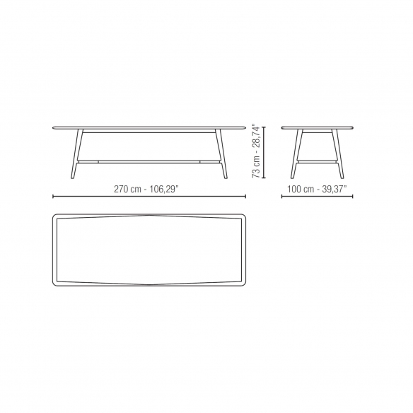 Dimensioni: Lunghezza 270 cm, Profondità 100 cm, Altezza 73 cm