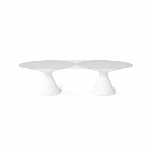 Il tavolo luminoso Ed II, con misure 280x140x72h cm, è una vera e propria scultura realizzata da Slide con una base conica in polietilene e un top rotondo in vetro. Grazie alla sua forma, al suo design e al suo colore, questo tavolo luminoso può essere posizionato in qualsiasi ambiente, sia esso indoor o outdoor: dal giardino per un evento con i colleghi, a una terrazza oppure un salotto per serate con gli amici o con la famiglia. Inoltre, la struttura è impreziosita dalla stilosa base luminosa che rende Ed II un oggetto decorativo capace di stupire i propri ospiti. Oltre al suo bellissimo aspetto, il tavolo Ed II ha una superficie ampia, perfetta per accogliere aperitivi, bevande, pranzi o cene. Slide garantisce che questo pezzo non sia solo un'opera di design ma anche un prodotto di qualità, resistente e durevole nel tempo, perfetto per chi cerca quella memorabile fusione tra arte, innovazione e funzionalità. Design di Guglielmo Berchicci per Slide.
