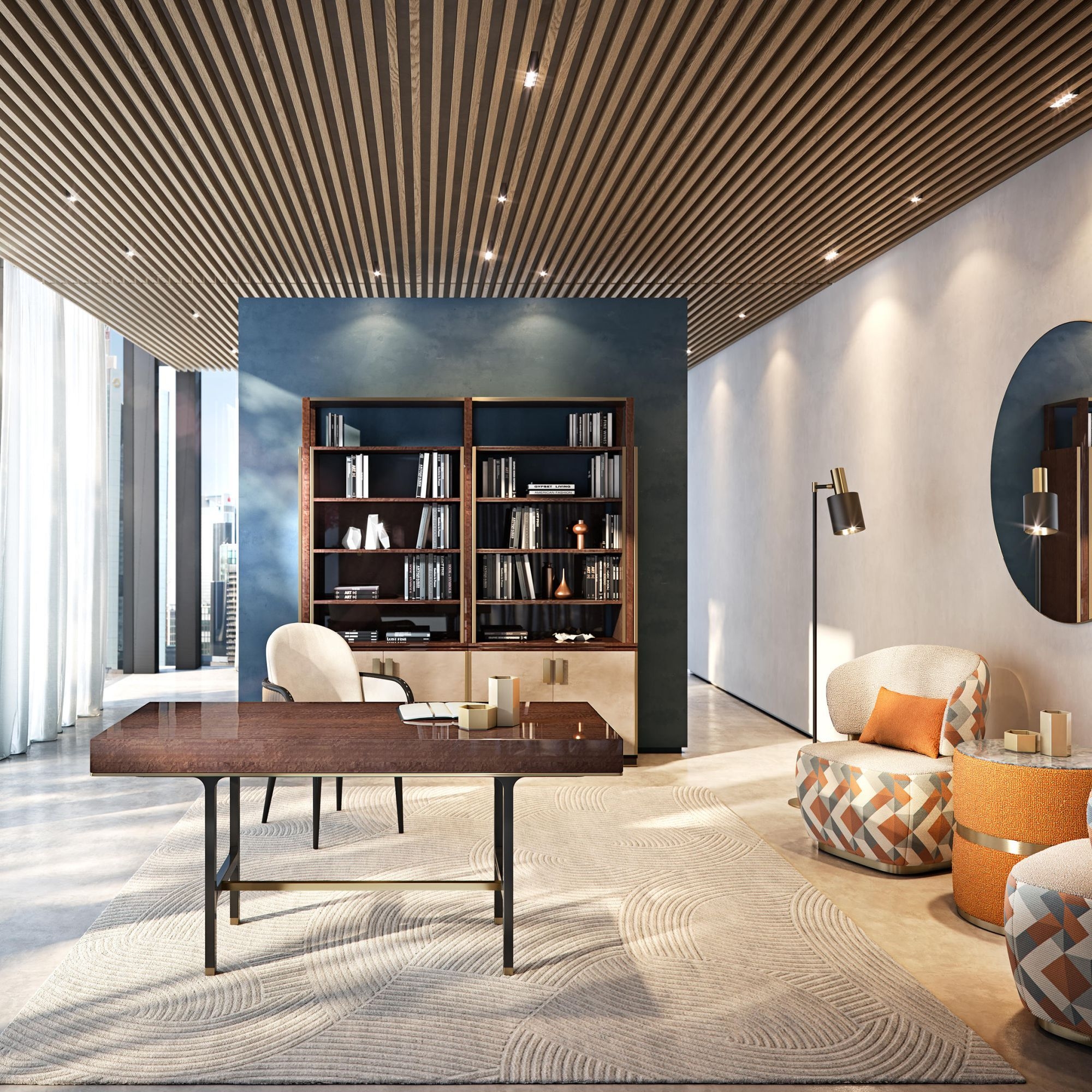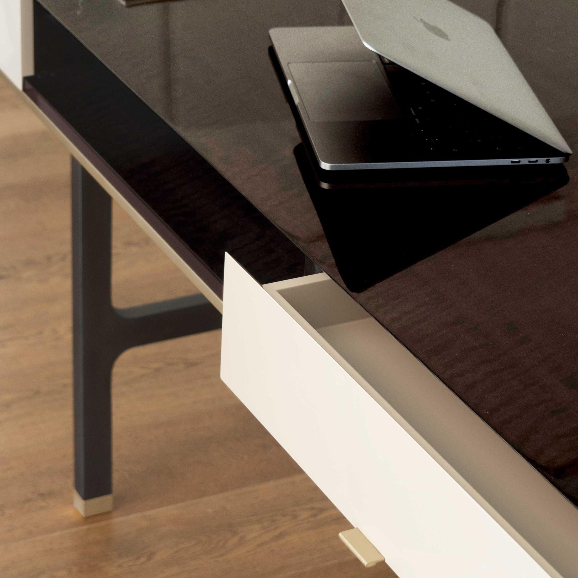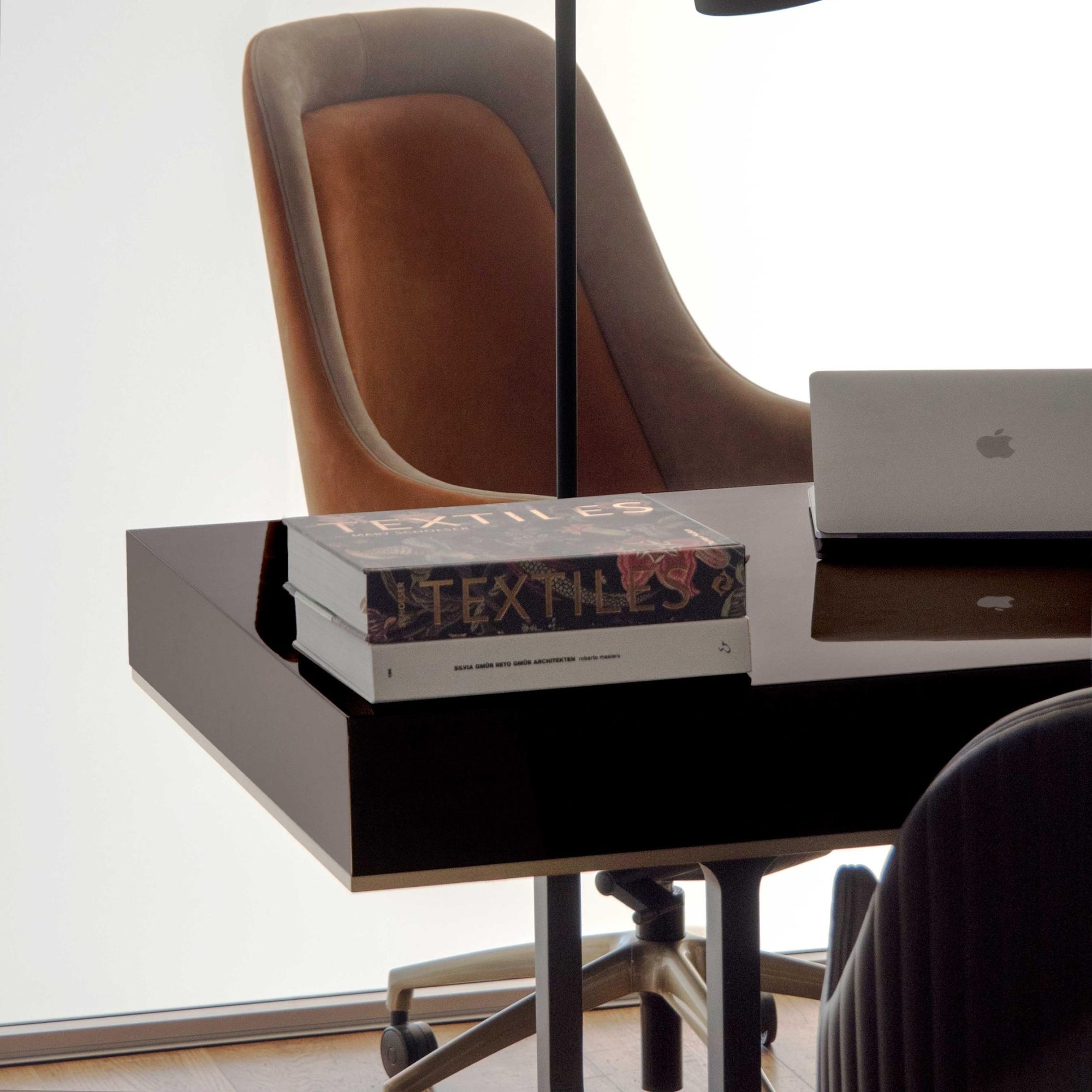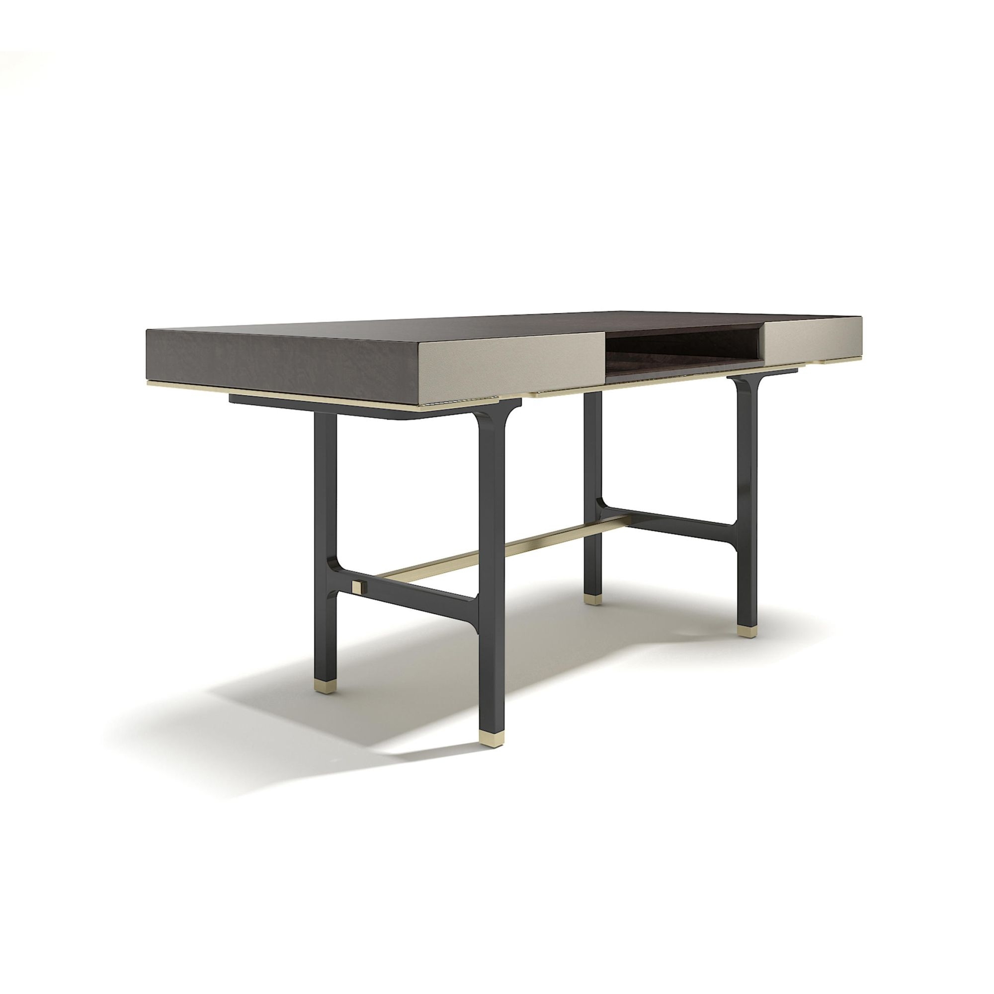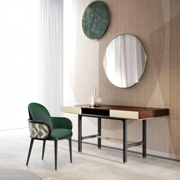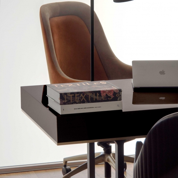 La scrivania Bolivar rappresenta un simbolo dell'artigianalità moderna, realizzata da Capital con struttura in essenza e gambe laccate, cassetti laterali con frontali laccati, vano centrale a giorno, dettagli, bicchierini e profili in metallo. Questa splendida scrivania ha un design unico e deciso ed è disponibile in varie combinazioni, il che la rende abbinabile perfettamente a qualsiasi tipologia di contesto e ambientazione: che sia posizionata in un ufficio chic, all'interno di uno studio domestico, in salotto o in camera da letto, Bolivar crea un'atmosfera professionale e lussuosa. La sua superficie ampia offre spazio per il multitasking quotidiano, dai computer portatili ai progetti di design, senza rinunciare allo stile. La scrivania Bolivar è molto più di un semplice mobile: è una dichiarazione di stile, un invito a lavorare in uno spazio che ispira creatività, ordine e professionalità. Design di Boatto Martino Studio.
