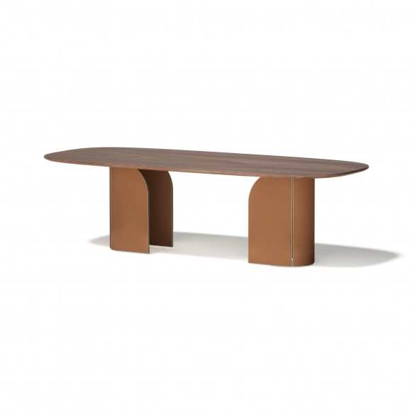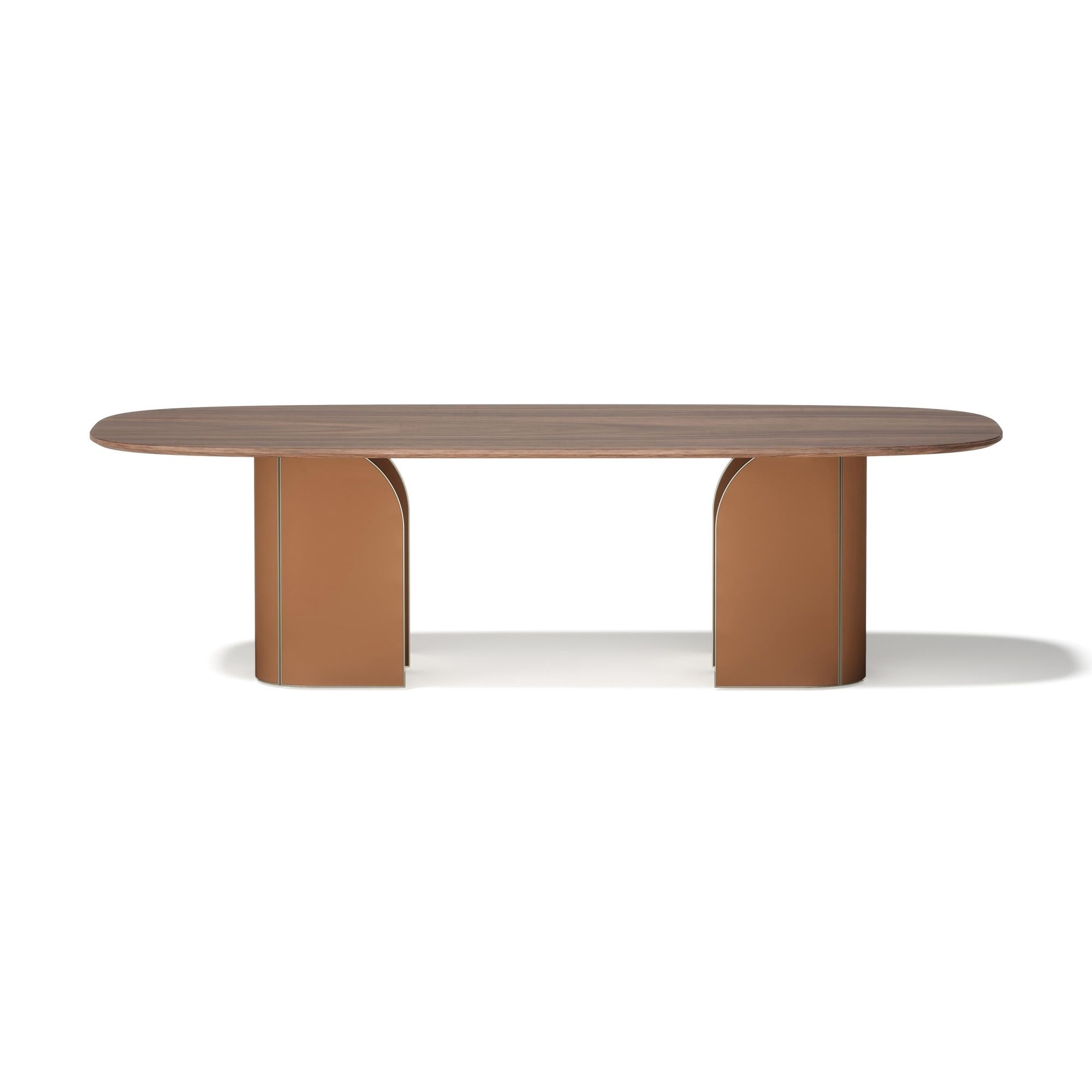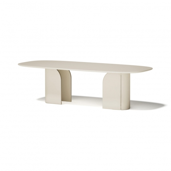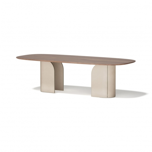 Il tavolo ovale Duna emerge come un capolavoro di design realizzato da Capital con piano in essenza o laccato, profili e dettagli in finitura metallica, basamenti disponibili in essenza, laccato o pelle. Grazie alla sua varietà di combinazioni, Duna può essere abbinato perfettamente a qualsiasi ambientazione: che si tratti di un salotto elegante, di uno studio prestigioso oppure di una camera da letto classica, questo tavolo ovale trasporta l’atmosfera mozzafiato e la sensazione di libertà trovate nel vasto deserto. Infatti, il tavolo ovale incarna l'essenza e l'eleganza selvaggia delle maestose dune del deserto. Ogni dettaglio del tavolo Duna è stato pensato per rispondere alle esigenze quotidiane con classe, offrendo spazio ampio per l'organizzazione interna e facilità d'uso attraverso ante che si aprono con una semplicità disarmante, frutto di un'ingegneria dedicata alla bellezza funzionale. Disegnato da Boatto Martino Studio per Capital.