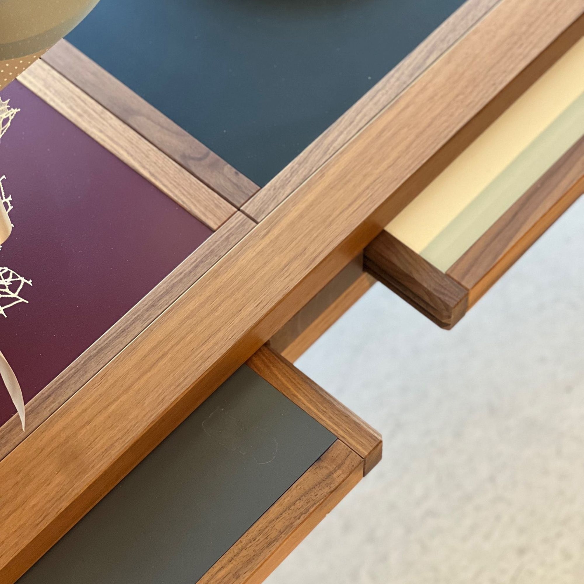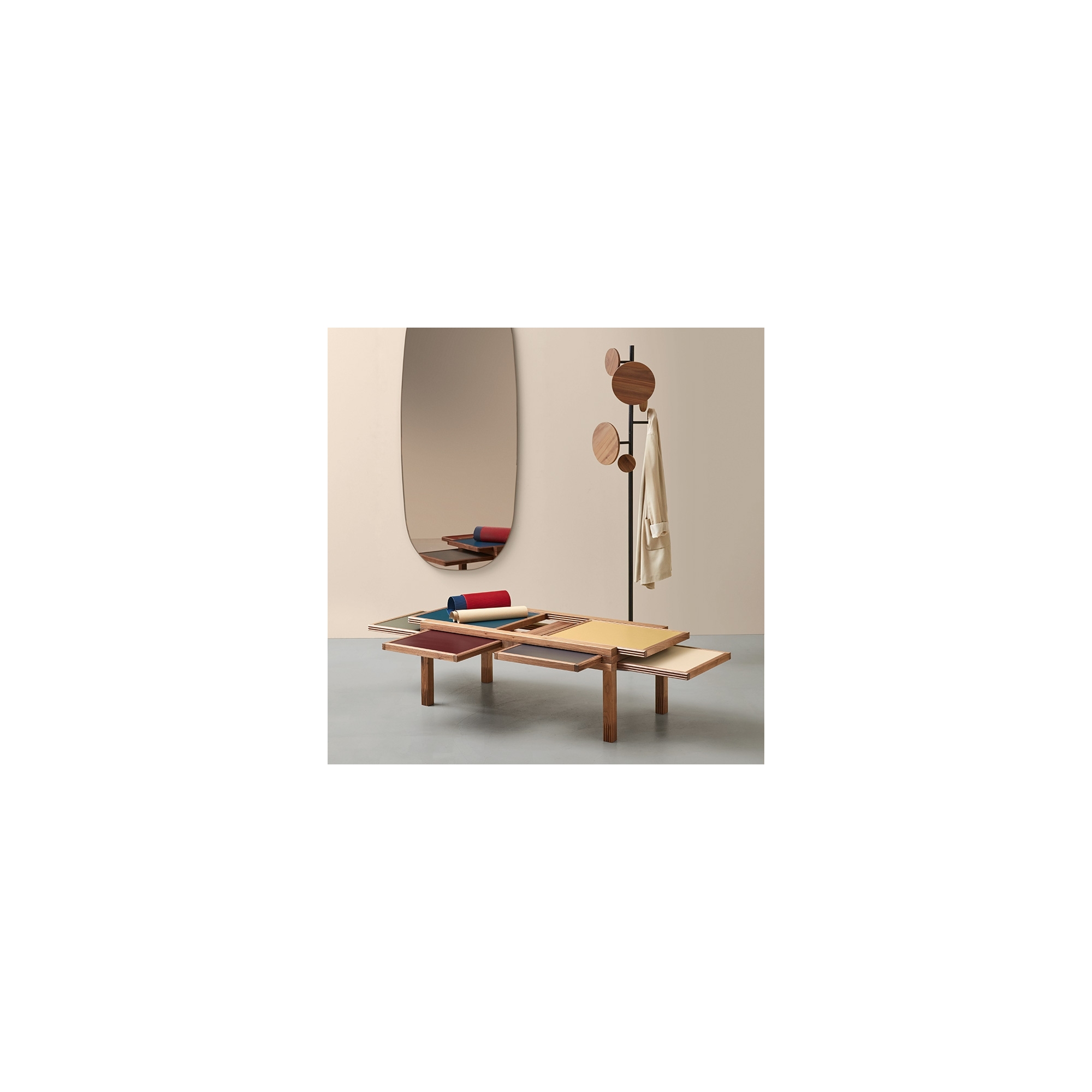 Tavolino basso Hexa realizzato con struttura in rovere tinto nero e 6 piani in laminato con una cornice in massello sul perimetro. Disponibile in 9 combinazioni di colore, il tavolino Hexa offre sei piani estraibili e reversibili, da usare come vassoi o superfici d'appoggio. Estremamente personalizzabile e componibile, il tavolino Hexa si adatta ad ogni ambiente e stile, andando oltre il semplice concetto di tavolino. Disegnato da Bernard Vuarnesson per Sculptures Jeux.