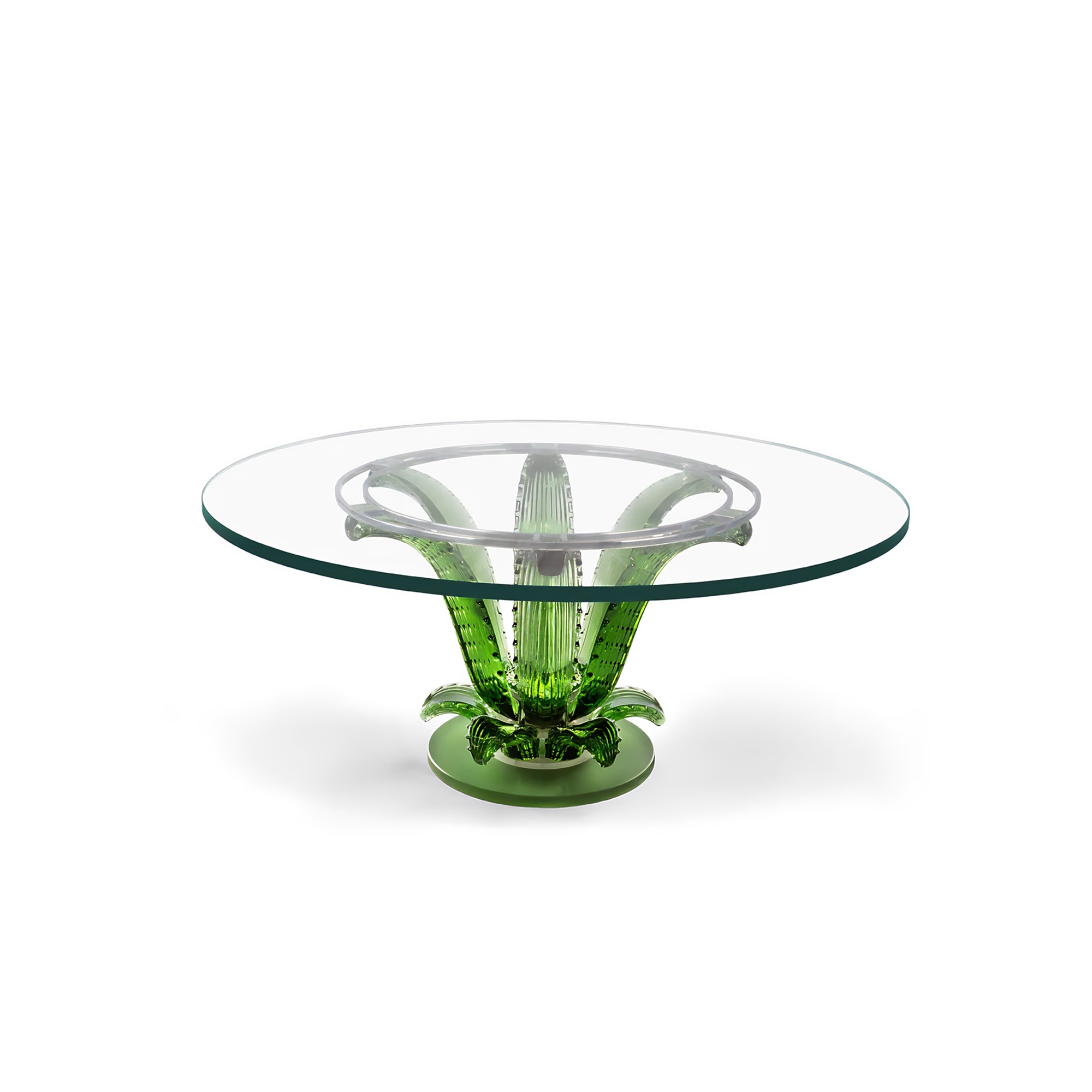 Il tavolino Cactus è un iconico prodotto di design realizzato da Lalique interamente in cristallo trasparente e verde. Questo prezioso tavolino si integra perfettamente negli spazi di interior design più creativi e contemporanei: che sia posizionato in un salotto, in una hall di un hotel lussuoso oppure in spazi professionali come uffici, Cactus dona un tocco di eleganza e classe a qualsiasi spazio. La sua rotondità e la sua geometria dirompente celebrano il genio creativo dei grandi artisti del vetro Lalique. L'effetto luminoso, amplificato dalle proprietà riflettenti del cristallo, contribuisce a creare giochi di luce che cambiano con il variare delle ore del giorno, conferendo al tavolino un aspetto sempre mutevole e intrigante. Il tavolino Cactus di Lalique è il risultato di un lungo processo di fabbricazione, durante il quale il cristallo viene soffiato, modellato e infine rifinito a mano dagli esperti artigiani dell'azienda. Ciò assicura che ogni pezzo sia unico e inimitabile, destinato a durare nel tempo.