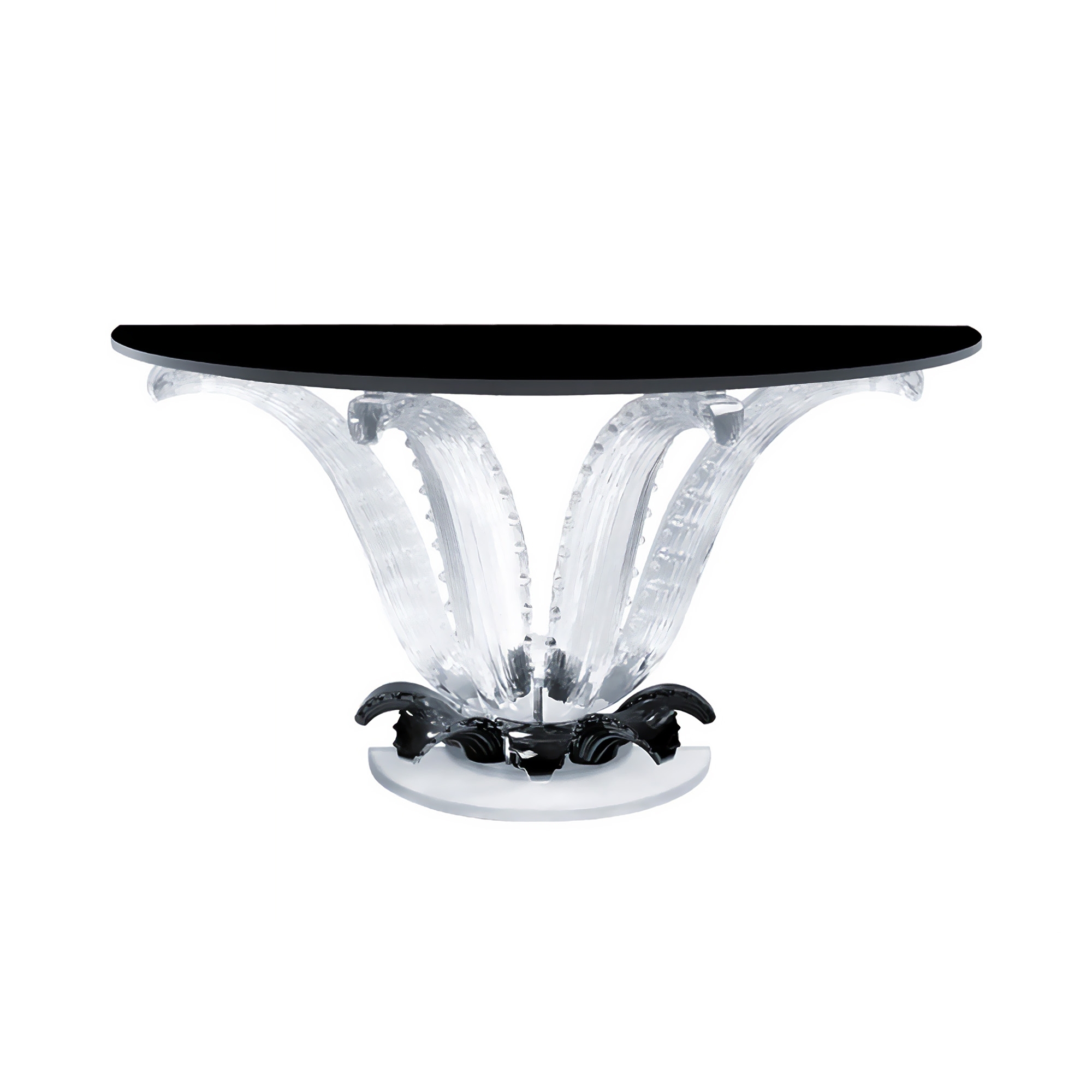 Lalique Consolle Mezzaluna Cactus in Cristallo Trasparente e Nero