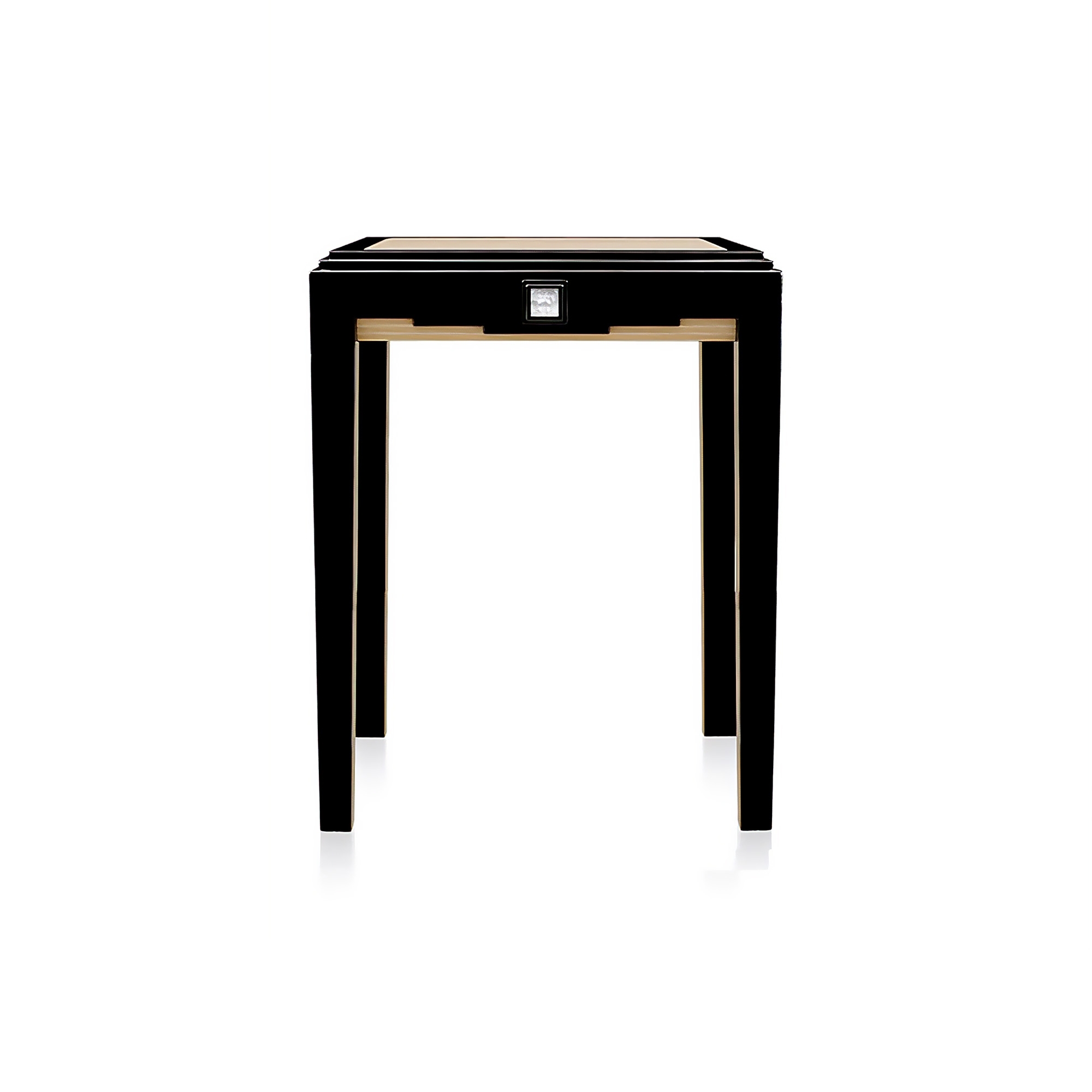 Lalique Tavolino medio in cristallo trasparente, laccato nero e frassino avorio Masque de femme