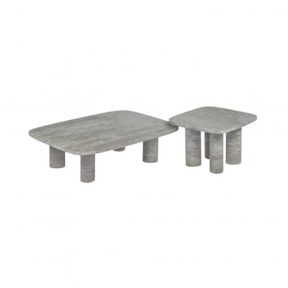 Tavolino quadrato Volos 52x52x34h cm realizzato in travertino. Disponibile in 2 eleganti colorazioni, il tavolino Volos rappresenta una fusione impeccabile tra forma e funzione, mettendo in rilievo la bellezza selvaggia e pura della pietra naturale. Scolpito nella travertina, una pietra calcarea porosa che nasconde al suo interno storia e caratteri millenari, il tavolino Volos cattura immediatamente l'attenzione per la sua texture irripetibile. Le buche e i pori che segnano la superficie non sono difetti ma testimoni autentici di un viaggio geologico, facendo di ogni tavolino un pezzo unico. Che si tratti di uno spazio intimo ed accogliente o di un'area ampia e collaborativa, Volos può essere selezionato per integrarsi armoniosamente nell'ambiente circostante o per divenire un audace punto focale che colpisce e domina la scena. Disegnato da Sebastian Herkner per Blomus.