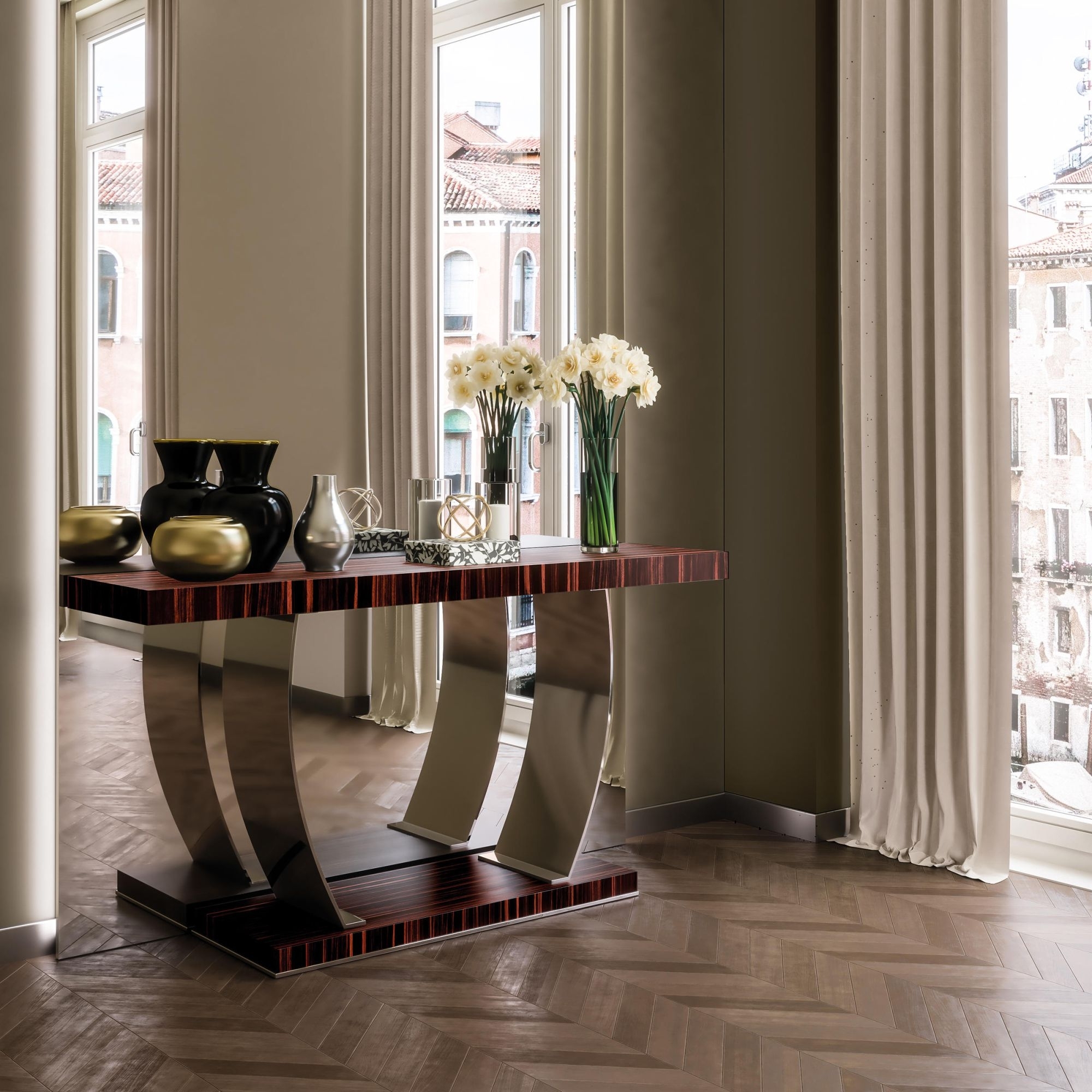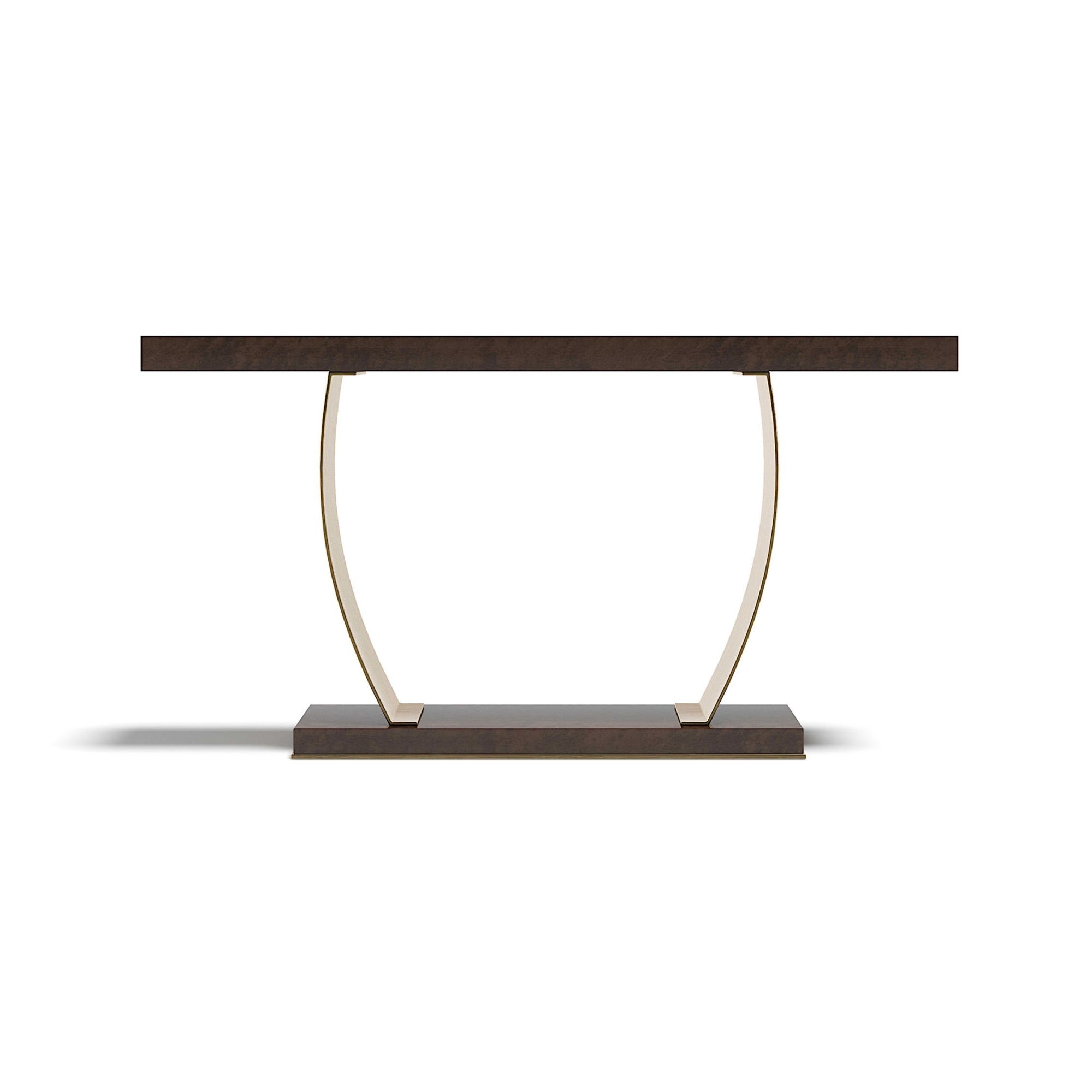 Karamel, nella sua versione large, è una meravigliosa consolle realizzata da Capital con piano in essenza e base in metallo, materiali che garantiscono una lucentezza senza pari e una notevole longevità. Questa consolle è caratterizzata da un design elegante e particolare, e grazie alla sua palette di colori può essere facilmente integrata a qualsiasi ambientazione e tipologia di arredamento: che sia collocata all'ingresso di una casa, in salotto, oppure in uno studio professionale, Karamel non è solo un pezzo di mobilia, ma un vero e proprio oggetto di stile che riflette la personalità e il gusto del proprietario. Inoltre, la sua superficie è stata progettata per accogliere ogni tipo di oggetto decorativo, dalle lampade ai vasi. Con la sua presenza raffinata e unica, la consolle Karamel invita ad entrare gli ospiti in casa con eleganza e stile, accogliendoli con una nota di inconfondibile fascino.