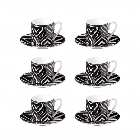 Roberto Cavalli 6 tazze da caffè con piattino Zebra 10 cl