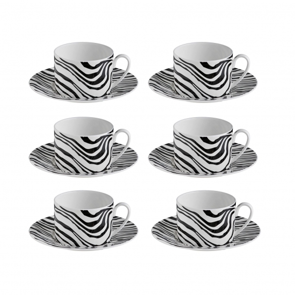Roberto Cavalli 6 tazze da tè con piattino Zebrage 20 cl