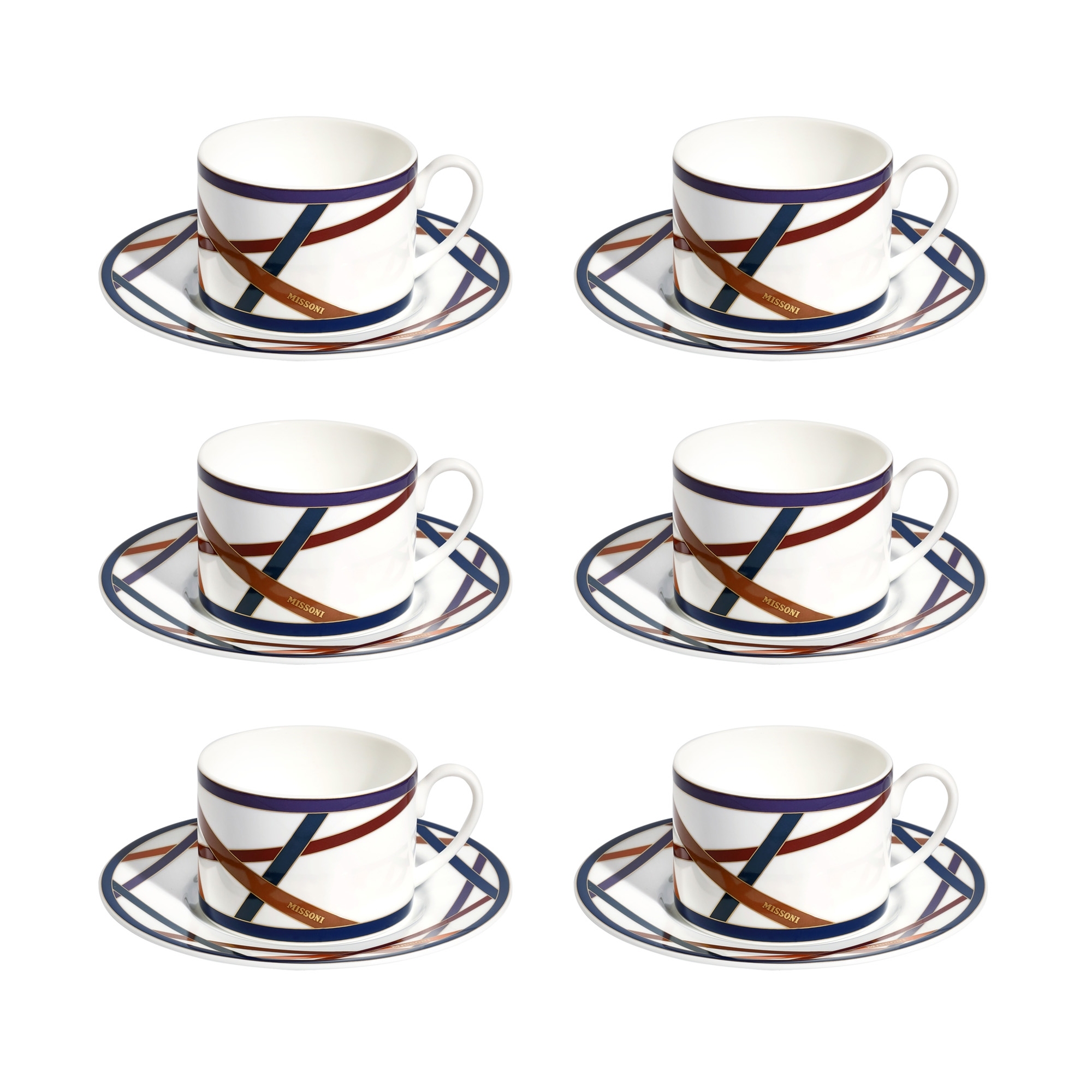 Missoni 6 tazze da tè con piattino Nastri Multicolor