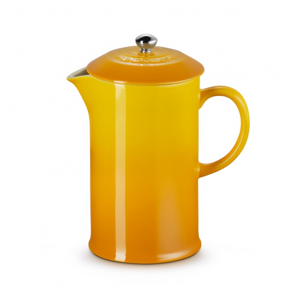 Coffee press realizzata in gres vetrificato smaltato all'esterno. Disponibile in 6 finiture di colore (arancio, ciliegia, mist grey, blu marsiglia, shell pink e meringue) è perfetta per gustare un delizioso caffè anche in compagnia, grazie alla generosa capacità di 1 litro. La robusta superficie in gres vetrificato e il pomolo in acciaio inox rendono questa caffettiera molto resistente e duratura nel tempo. Design inconfondibile di Le Creuset con il motivo a 3 anelli sulla superficie del coperchio fanno di questa caffettiera un oggetto davvero unico nel suo genere!