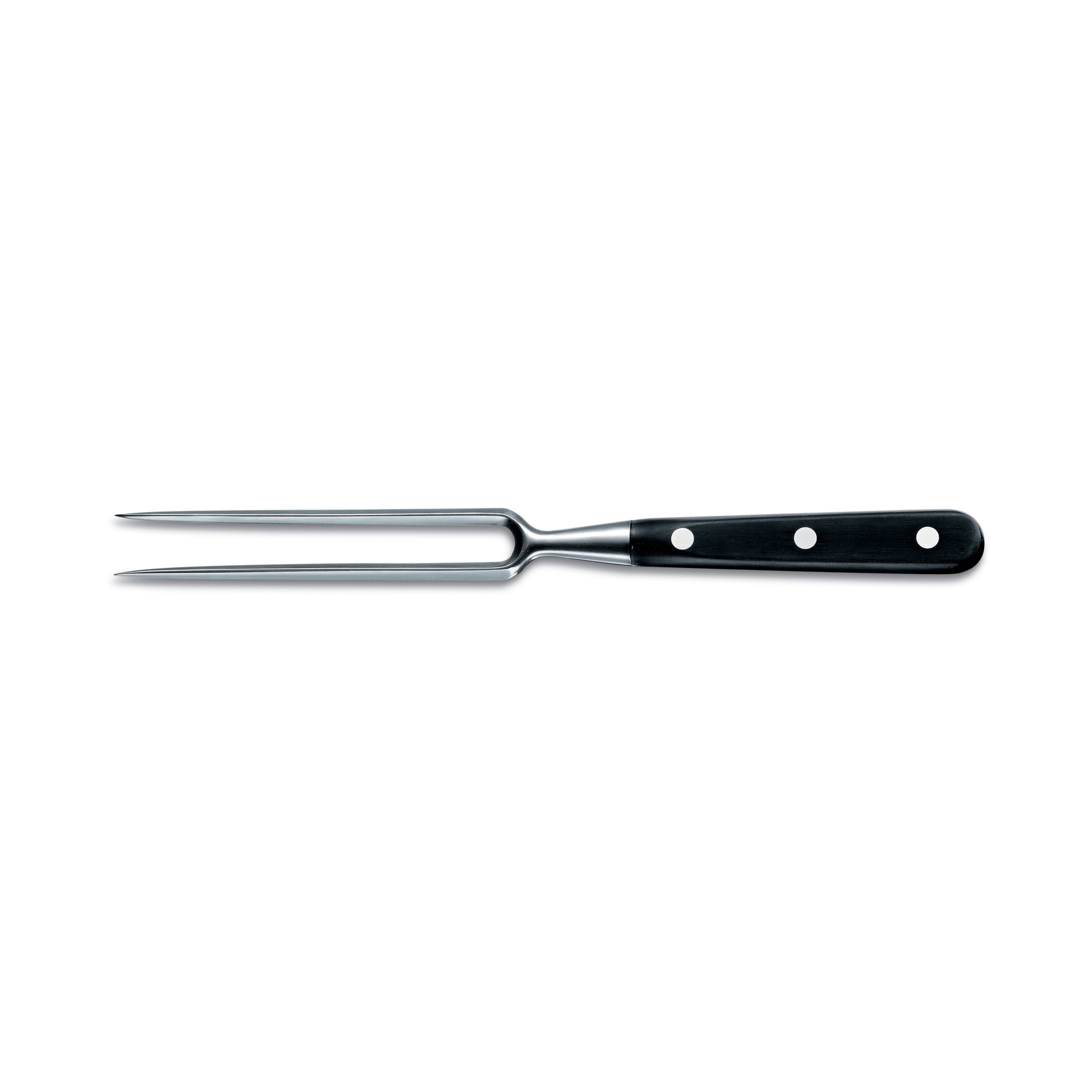 Forchettone da cucina Grand Maître realizzato con manico in poliossimetilene (POM) e lama in acciaio inox di alta qualità. Perfetto per affiancare qualsiasi coltello da cucina, il forchettone Grand Maître è un must-have per ogni cuoco che desidera precisione e controllo nel proprio lavoro. I rebbi, forgiati con precisione, sono disposti strategicamente per offrire una penetrazione ottimale e una presa sicura su carni e altri alimenti, facilitando il taglio perfetto. Il manico, oltre ad avere un aspetto elegante, è stato progettato per garantire il massimo comfort e controllo durante l'uso, riducendo la fatica e aumentando la precisione. Realizzato da Victorinox.