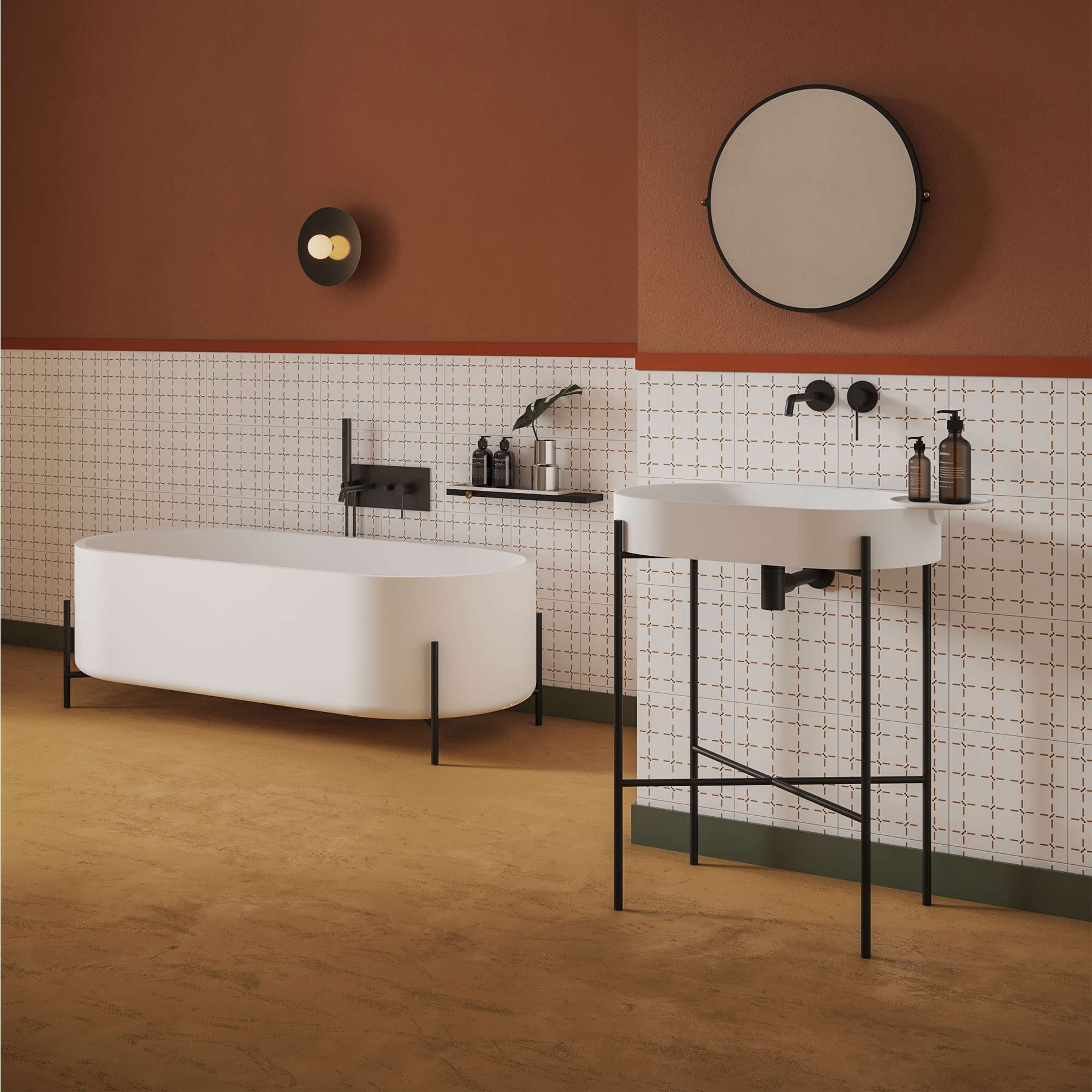 La vasca da bagno Stand è stata realizzata da Ex.t in LivingTec® e ottone, materiali resistenti e nel massimo rispetto dell’ambiente. Caratterizzata dallo stile elegante dell'Art Deco e Art Nouveau, questa vasca da bagno rappresenta un vero e proprio simbolo di design e comfort nel panorama dell'arredamento da bagno, un'icona che si inserisce con facilità ed eleganza in qualsiasi contesto abitativo, offrendo un'esperienza di relax inimitabile: che sia posizionata all'interno di un bagno moderno, minimalista oppure tradizionale, Stand incarna i valori di bellezza, praticità e innovazione. La superficie è omogenea, non porosa ed estremamente funzionale. Il materiale non ingiallisce nel tempo, resiste ai raggi UV e all’usura quotidiana. Facile da riparare in caso di graffi e abrasioni, è eco-sostenibile e completamente riciclabile. Crea la tua oasi di relax e benessere con Stand. Non lasciarti scappare l'opportunità di avere questo pezzo di arredamento nel tuo appartamento. Disegnata da Norm Architects per Ex.t.