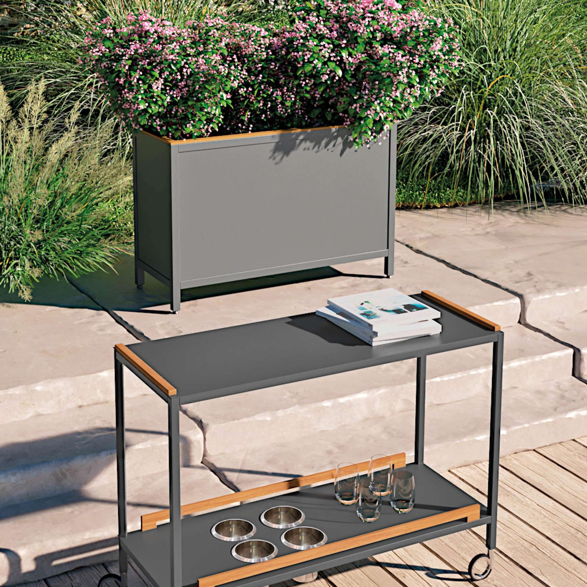 Fioriera da esterno Flair realizzata in ferro zincato e verniciato a polveri epossidiche per esterni e dettagli in teak massiccio Asiatico. Disponibile in 3 colori, la fioriera outdoor Flair è la scelta perfetta per chi cerca un tocco di stile e funzionalità nei propri spazi aperti. Progettata per integrarsi con armonia tanto negli ambienti residenziali quanto quelli dedicati all'hospitality, la fioriera si adatta con facilità a qualunque mood grazie alla sua disponibilità in colori sobri e versatili. La fiorirera Flair è un complemento d'arredo esterno estremamente pratico, che con le sue forme minimali e pulite, riesce a coniugare semplicità ed eleganza. Si tratta di una soluzione ottimale per chi vuole valorizzare terrazzi, giardini o spazi all’aperto di strutture ricettive, non solo come elemento decorativo ma anche come strumento funzionale per l'allestimento green. Resistente alle intemperie e progettata per durare nel tempo, la fioriera Flair diventa il contenitore ideale per piantare fiori, piante o erbe aromatiche, contribuendo a creare un ambiente esterno piacevole e rilassante. Scegli la fioriera da esterno Flair per dare una nuova vita al tuo spazio outdoor con un design che cattura l'attenzione e non passa mai di moda. Disegnata da Atmosphera Creative Lab.