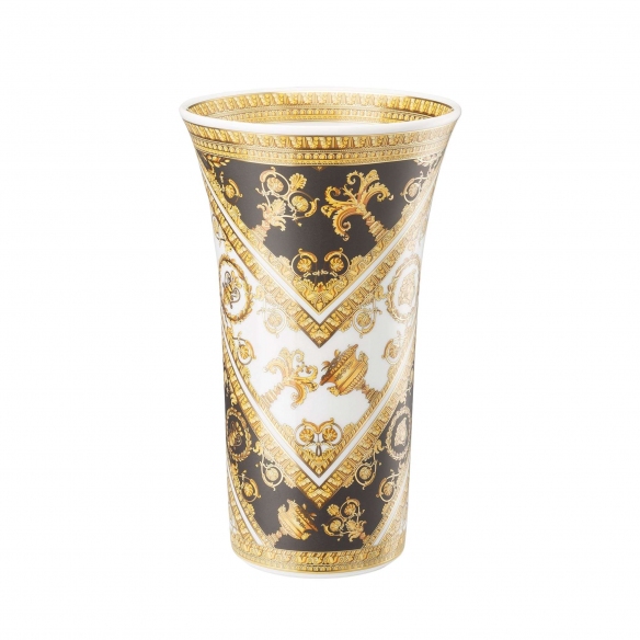 Vaso dall'altezza di 26 cm, appartenente alla collezione I Love Baroque, realizzato in finissima porcellana decorata. Dall'eleganza senza tempo, questo esclusivo accessorio della collezione I Love Baroque si contraddistingue per l'esuberanza del colore oro, la ricchezza e la raffinatezza delle decorazioni e la purezza della porcellana. Lussuoso ed elegante, il vaso I Love Baroque presenta un magnifico contrasto visivo tra la pienezza del nero opaco e del bianco lucido. Destinato ai veri appassionati di design, questo splendido vaso si sposa perfettamente con qualsiasi ambiente, sia contemporaneo che "old-fashioned". Realizzato da Rosenthal Versace.