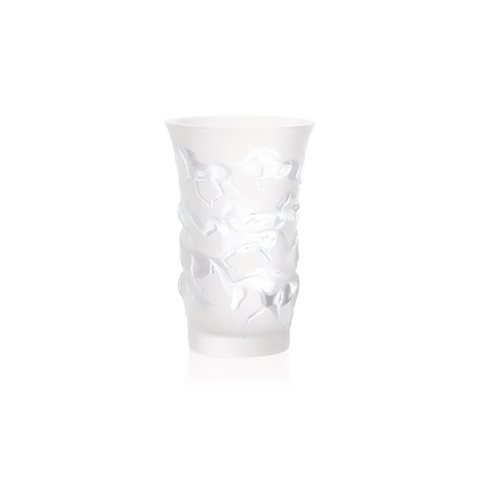 Vaso Mustang realizzato in cristallo. Affascinante e particolare, il vaso Mustang cattura l'energia e la libertà di una mandria di cavalli selvaggi in pieno galoppo. I dettagli accuratamente lavorati rivelano criniere fluenti e movimenti agili che incarnano lo spirito indomito dei cavalli, rendendo il vaso Mustang un simbolo potente della vera libertà. Realizzato da Lalique.