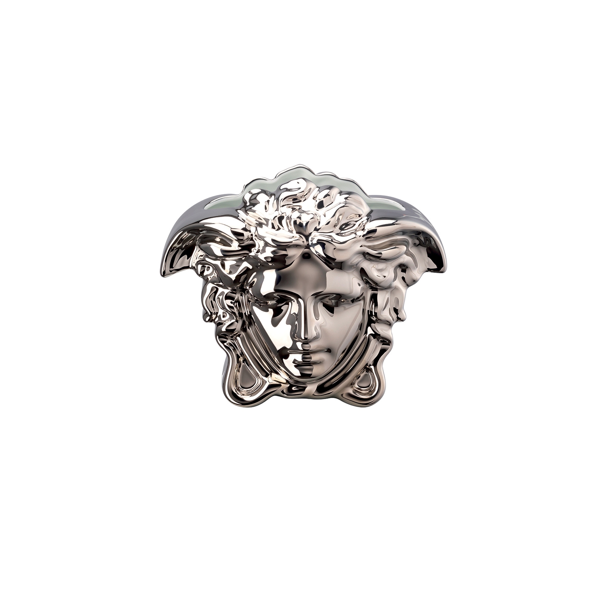 Vaso Medusa Grande (altezza 15 cm) realizzato in porcellana. Disponibile in 4 splendidi colori, il vaso Medusa Grande si distingue non solo come un complemento d'arredo di raffinata eleganza, ma anche come una dichiarazione di design di inestimabile valore. Progettato per accogliere con maestria bouquet e composizioni floreali opulente, l'apertura allargata nella testa di Medusa permette di esporre la bellezza naturale dei fiori in modo spettacolare, aggiungendo un tocco di classe e vivacità ad ogni ambiente. Realizzato in finissima porcellana, il Vaso Medusa Grande si impone come simbolo di lusso e raffinatezza, incarnando l'essenza dell'eleganza Versace. Disponibile in diverse dimensioni e una varietà di tonalità cromatiche, questo straordinario pezzo di design offre un'ampia gamma di opzioni per personalizzare gli spazi interni, rendendolo adatto ad ogni stile di arredamento, dal classico al moderno. La silhouette leggendaria del vaso, che attinge all'eredità e al fascino mitologico della Medusa, cattura l'attenzione e arricchisce con un senso di storia e cultura ogni spazio in cui viene collocato. La combinazione di forme classiche e interpretazione contemporanea rende il Vaso Medusa Grande un pezzo unico nel suo genere, un vero e proprio capolavoro che incarna la maestria artigianale e il design innovativo che caratterizzano la maison Versace.