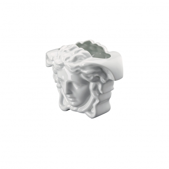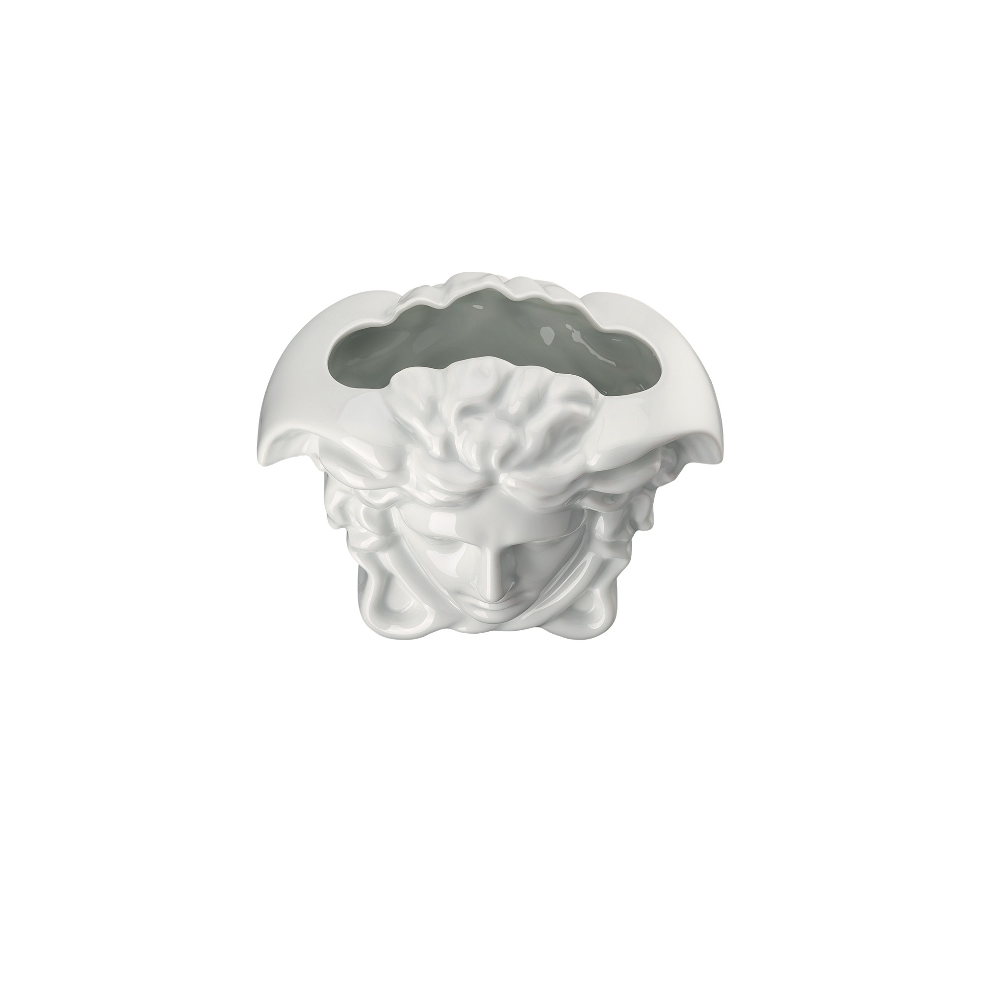 Vaso Medusa Grande (altezza 15 cm) realizzato in porcellana. Disponibile in 4 splendidi colori, il vaso Medusa Grande si distingue non solo come un complemento d'arredo di raffinata eleganza, ma anche come una dichiarazione di design di inestimabile valore. Progettato per accogliere con maestria bouquet e composizioni floreali opulente, l'apertura allargata nella testa di Medusa permette di esporre la bellezza naturale dei fiori in modo spettacolare, aggiungendo un tocco di classe e vivacità ad ogni ambiente. Realizzato in finissima porcellana, il Vaso Medusa Grande si impone come simbolo di lusso e raffinatezza, incarnando l'essenza dell'eleganza Versace. Disponibile in diverse dimensioni e una varietà di tonalità cromatiche, questo straordinario pezzo di design offre un'ampia gamma di opzioni per personalizzare gli spazi interni, rendendolo adatto ad ogni stile di arredamento, dal classico al moderno. La silhouette leggendaria del vaso, che attinge all'eredità e al fascino mitologico della Medusa, cattura l'attenzione e arricchisce con un senso di storia e cultura ogni spazio in cui viene collocato. La combinazione di forme classiche e interpretazione contemporanea rende il Vaso Medusa Grande un pezzo unico nel suo genere, un vero e proprio capolavoro che incarna la maestria artigianale e il design innovativo che caratterizzano la maison Versace.