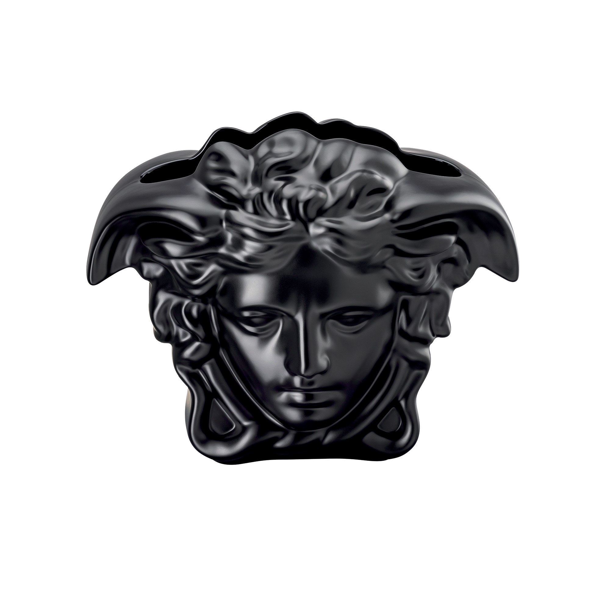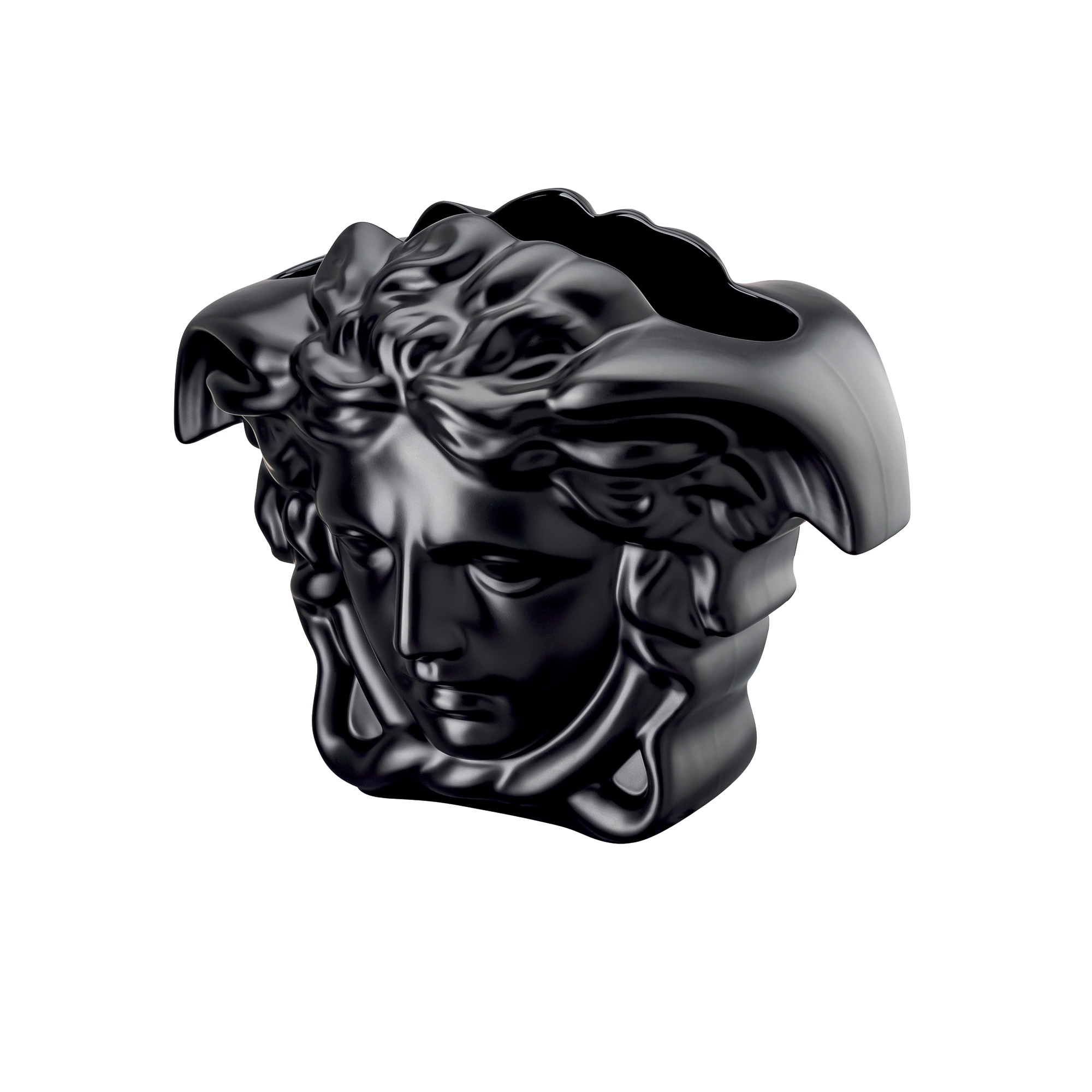 Vaso Medusa Grande (altezza 30 cm) realizzato in porcellana. Disponibile in 4 splendidi colori, il vaso Medusa Grande si distingue non solo come un complemento d'arredo di raffinata eleganza, ma anche come una dichiarazione di design di inestimabile valore. Progettato per accogliere con maestria bouquet e composizioni floreali opulente, l'apertura allargata nella testa di Medusa permette di esporre la bellezza naturale dei fiori in modo spettacolare, aggiungendo un tocco di classe e vivacità ad ogni ambiente. Realizzato in finissima porcellana, il Vaso Medusa Grande si impone come simbolo di lusso e raffinatezza, incarnando l'essenza dell'eleganza Versace. Disponibile in diverse dimensioni e una varietà di tonalità cromatiche, questo straordinario pezzo di design offre un'ampia gamma di opzioni per personalizzare gli spazi interni, rendendolo adatto ad ogni stile di arredamento, dal classico al moderno. La silhouette leggendaria del vaso, che attinge all'eredità e al fascino mitologico della Medusa, cattura l'attenzione e arricchisce con un senso di storia e cultura ogni spazio in cui viene collocato. La combinazione di forme classiche e interpretazione contemporanea rende il Vaso Medusa Grande un pezzo unico nel suo genere, un vero e proprio capolavoro che incarna la maestria artigianale e il design innovativo che caratterizzano la maison Versace.