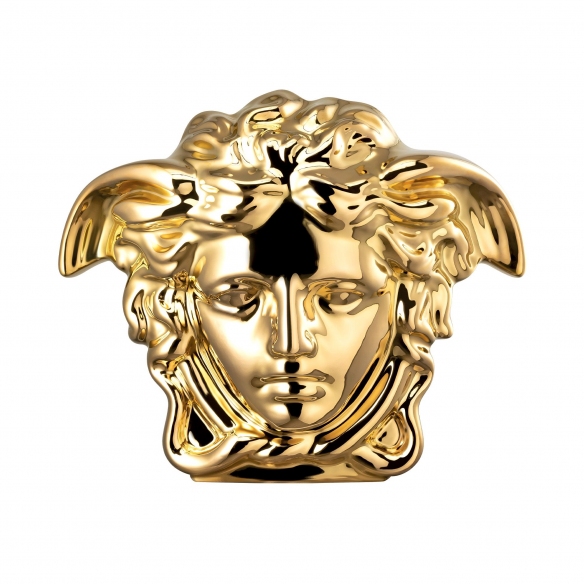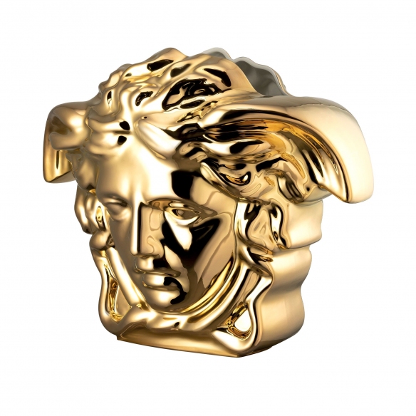 Vaso Medusa Grande (altezza 66 cm) realizzato in porcellana. Disponibile nella finitura Gold, il vaso Medusa Grande si distingue non solo come un complemento d'arredo di raffinata eleganza, ma anche come una dichiarazione di design di inestimabile valore. Progettato per accogliere con maestria bouquet e composizioni floreali opulente, l'apertura allargata nella testa di Medusa permette di esporre la bellezza naturale dei fiori in modo spettacolare, aggiungendo un tocco di classe e vivacità ad ogni ambiente. Realizzato in finissima porcellana, il Vaso Medusa Grande si impone come simbolo di lusso e raffinatezza, incarnando l'essenza dell'eleganza Versace. Disponibile in diverse dimensioni e una varietà di tonalità cromatiche, questo straordinario pezzo di design offre un'ampia gamma di opzioni per personalizzare gli spazi interni, rendendolo adatto ad ogni stile di arredamento, dal classico al moderno. La silhouette leggendaria del vaso, che attinge all'eredità e al fascino mitologico della Medusa, cattura l'attenzione e arricchisce con un senso di storia e cultura ogni spazio in cui viene collocato. La combinazione di forme classiche e interpretazione contemporanea rende il Vaso Medusa Grande un pezzo unico nel suo genere, un vero e proprio capolavoro che incarna la maestria artigianale e il design innovativo che caratterizzano la maison Versace.