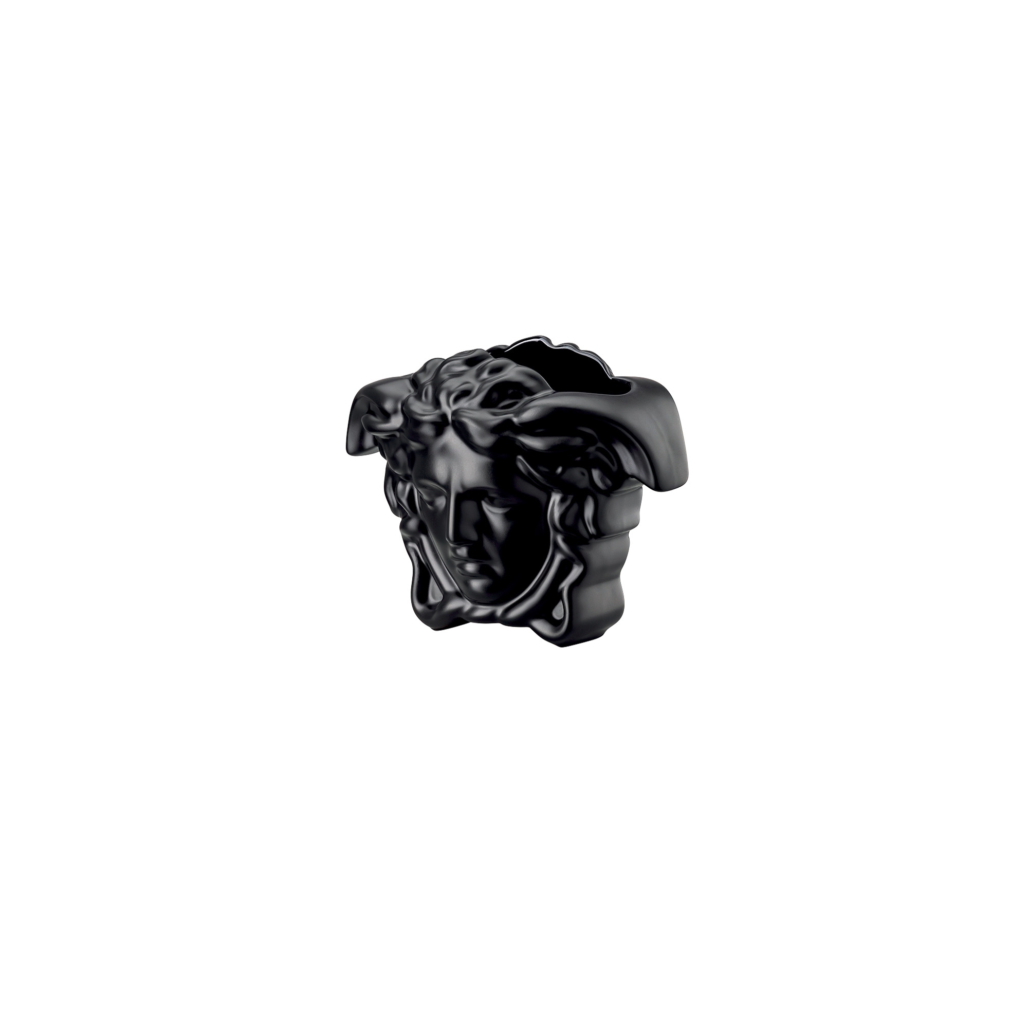 Vaso Medusa Grande (altezza 9 cm) realizzato in porcellana. Disponibile in 4 splendidi colori, il vaso Medusa Grande si distingue non solo come un complemento d'arredo di raffinata eleganza, ma anche come una dichiarazione di design di inestimabile valore. Progettato per accogliere con maestria bouquet e composizioni floreali opulente, l'apertura allargata nella testa di Medusa permette di esporre la bellezza naturale dei fiori in modo spettacolare, aggiungendo un tocco di classe e vivacità ad ogni ambiente. Realizzato in finissima porcellana, il Vaso Medusa Grande si impone come simbolo di lusso e raffinatezza, incarnando l'essenza dell'eleganza Versace. Disponibile in diverse dimensioni e una varietà di tonalità cromatiche, questo straordinario pezzo di design offre un'ampia gamma di opzioni per personalizzare gli spazi interni, rendendolo adatto ad ogni stile di arredamento, dal classico al moderno. La silhouette leggendaria del vaso, che attinge all'eredità e al fascino mitologico della Medusa, cattura l'attenzione e arricchisce con un senso di storia e cultura ogni spazio in cui viene collocato. La combinazione di forme classiche e interpretazione contemporanea rende il Vaso Medusa Grande un pezzo unico nel suo genere, un vero e proprio capolavoro che incarna la maestria artigianale e il design innovativo che caratterizzano la maison Versace.
